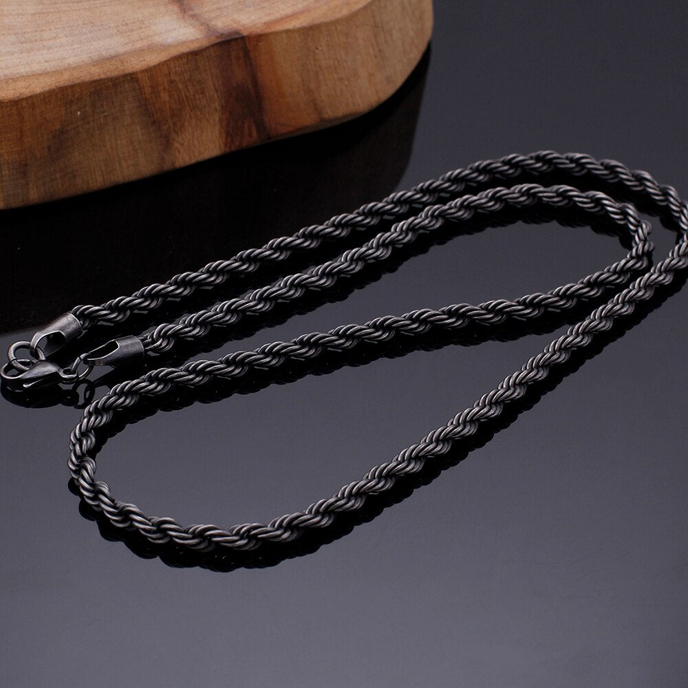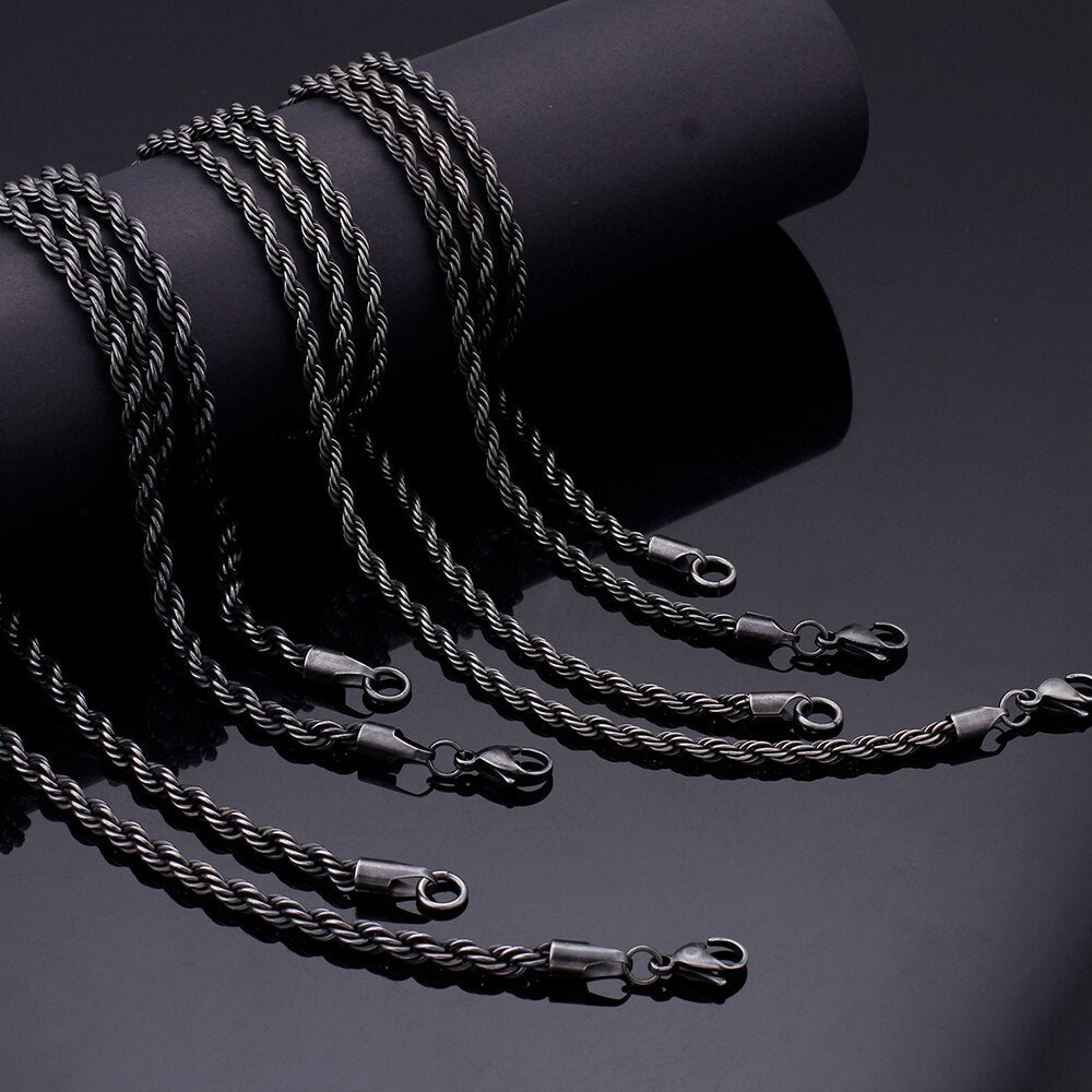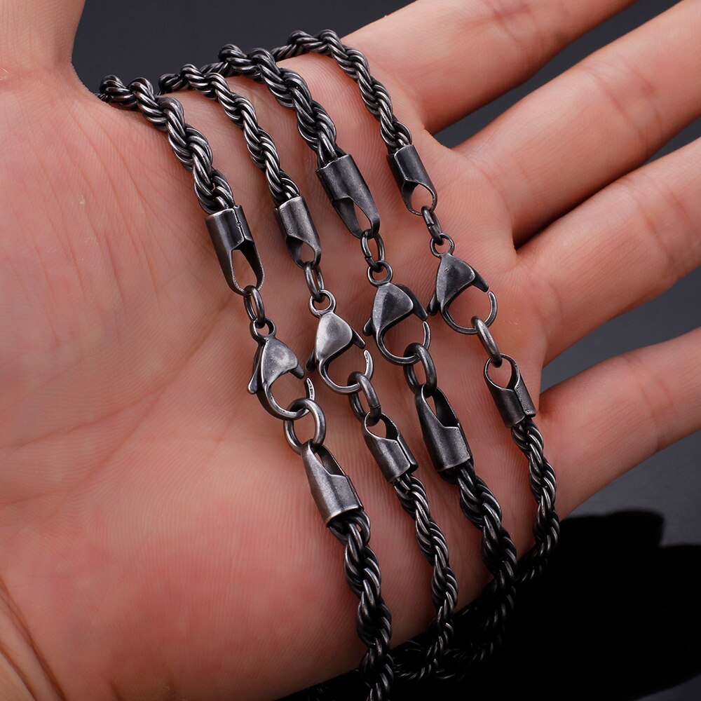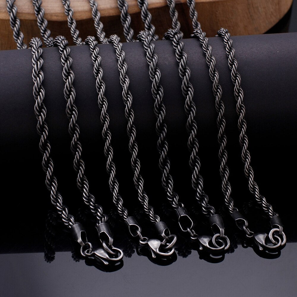 Collar de cadena torcida de 4/5 mm de ancho para hombre, vintage, de acero inoxidable macizo negro, de 66/76 cm de largo, para mujer, joyería con envío directo