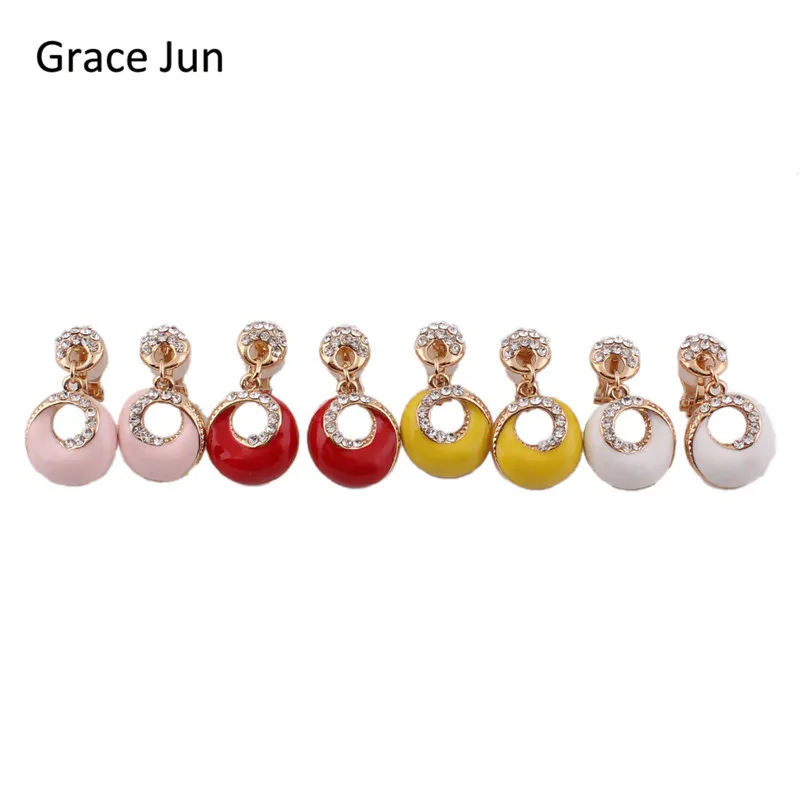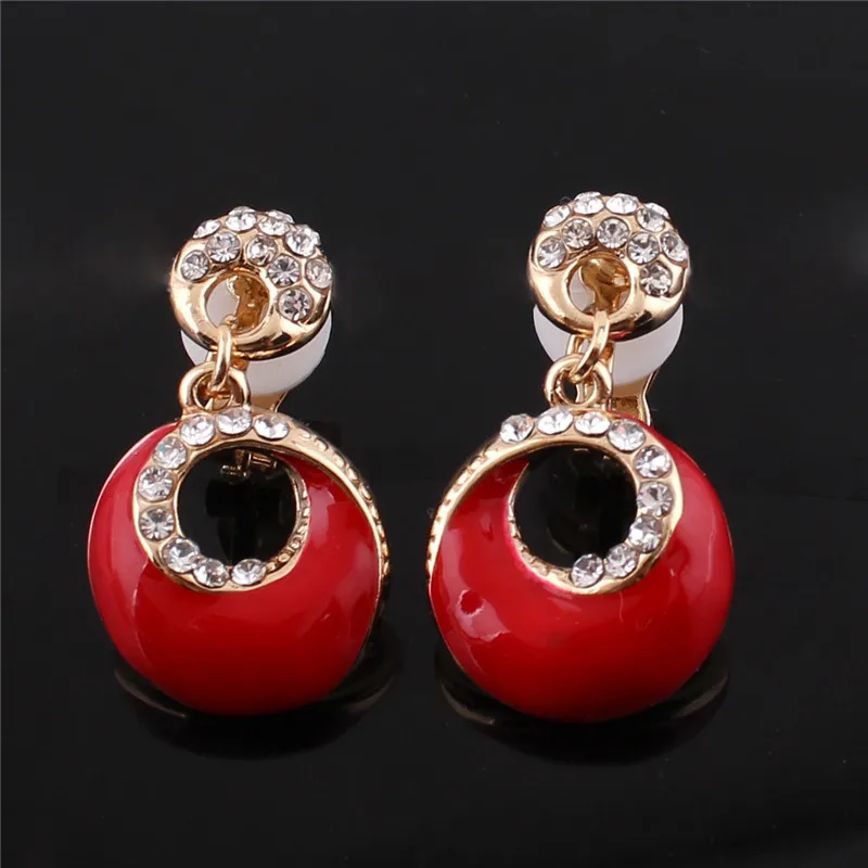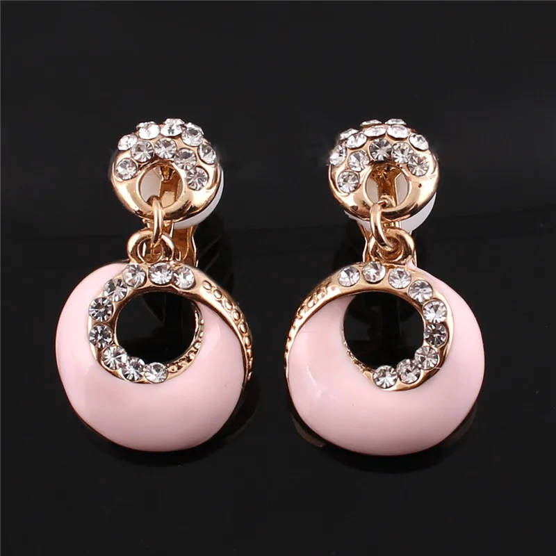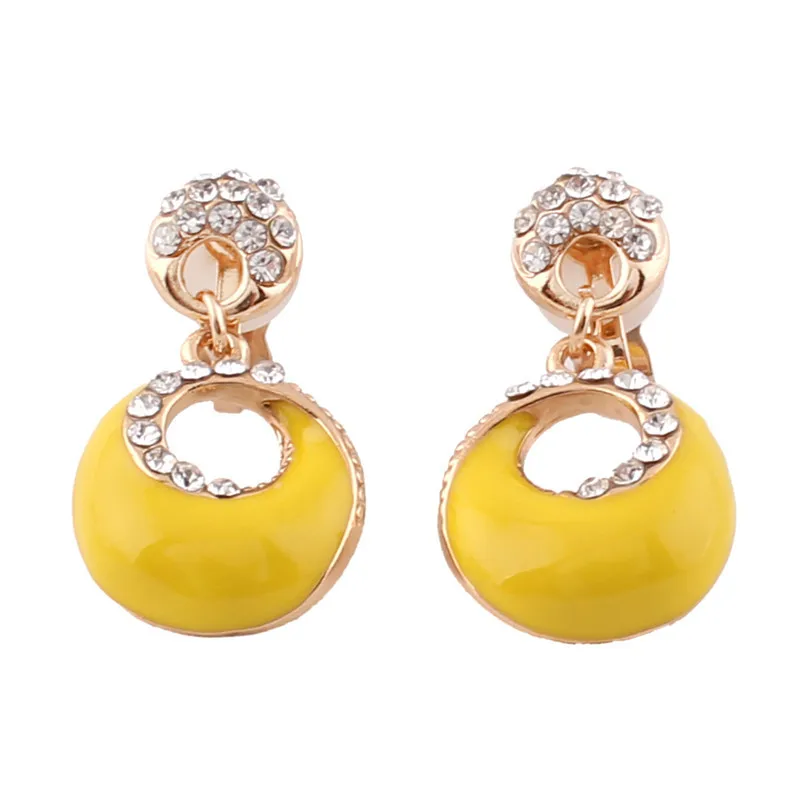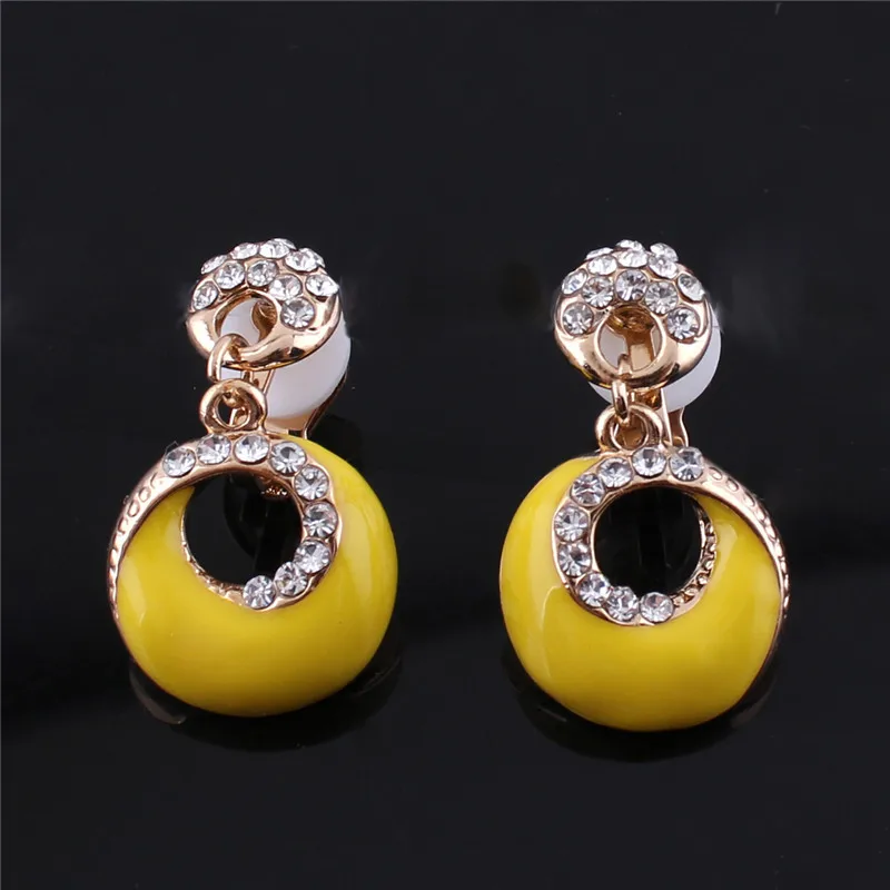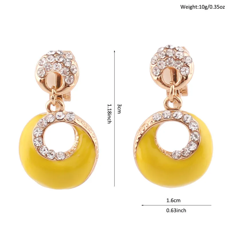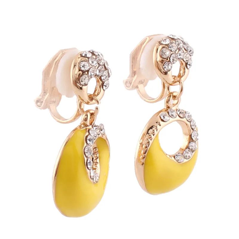 Pendientes de clip de esmalte con diamantes de imitación, sin perforaciones, en 4 colores a elegir