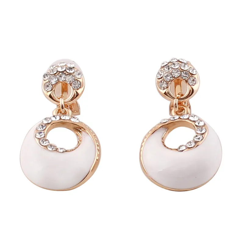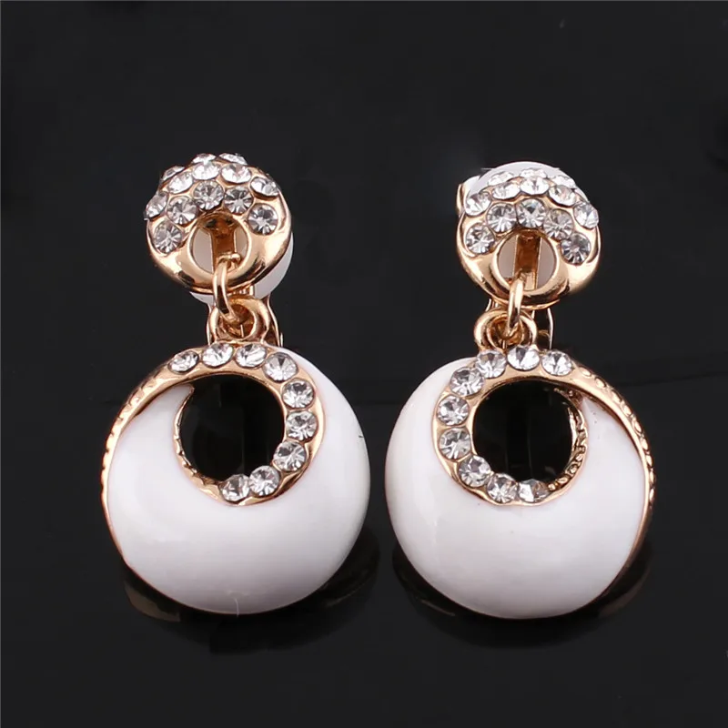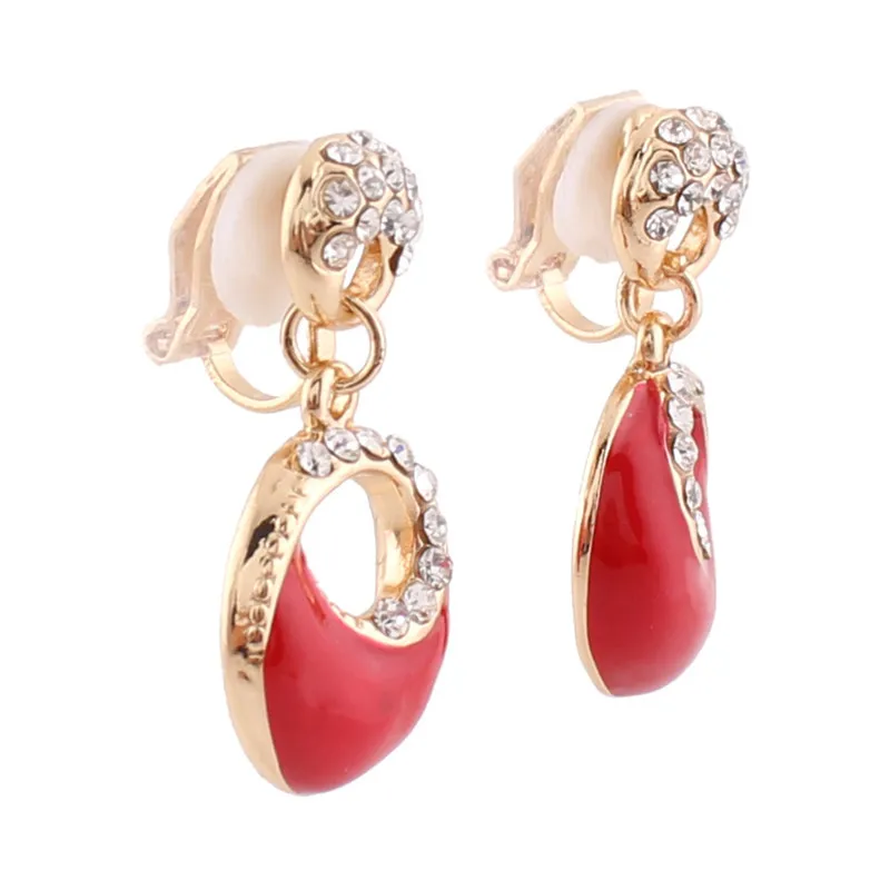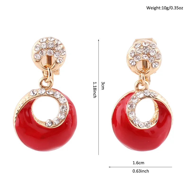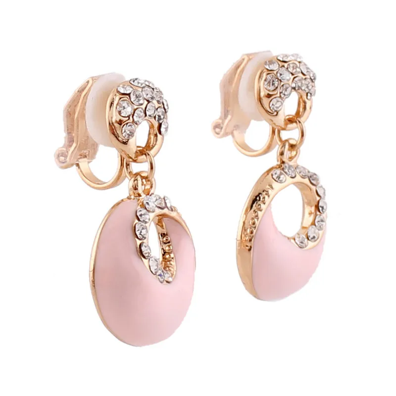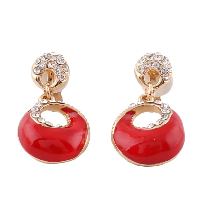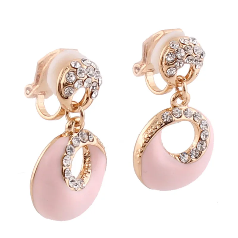 Pendientes de moda: 4 colores a elegir, con clip de esmalte y diamantes de imitación, sin perforaciones, para mujer, joyería bonita de moda, sin orificio para la oreja.