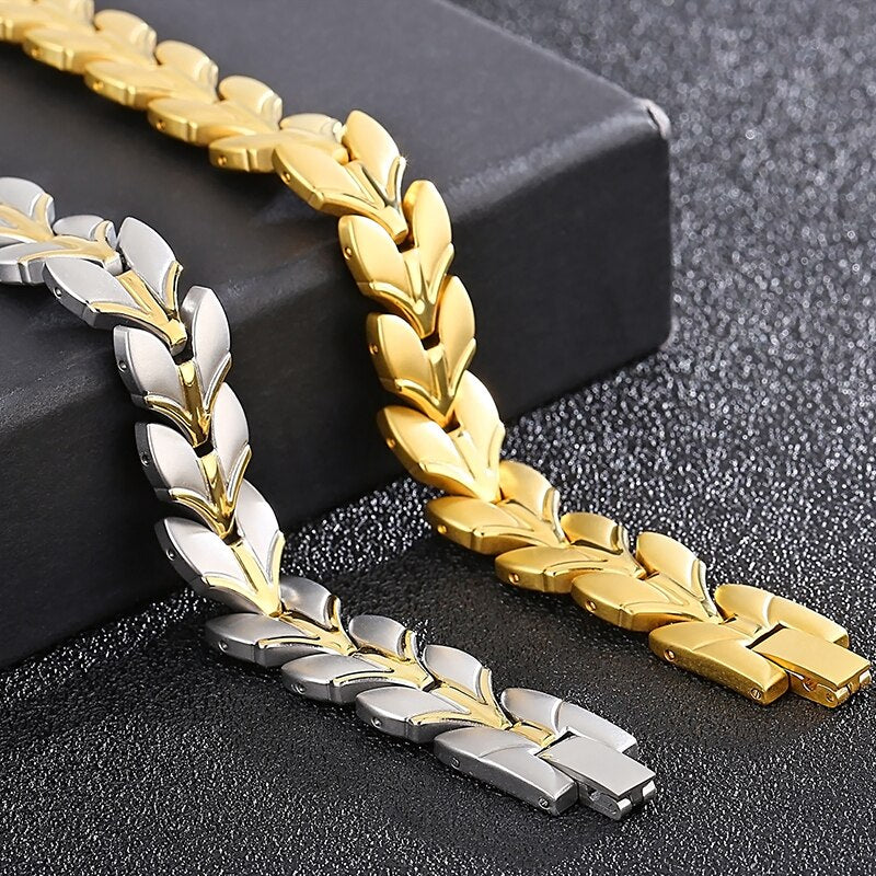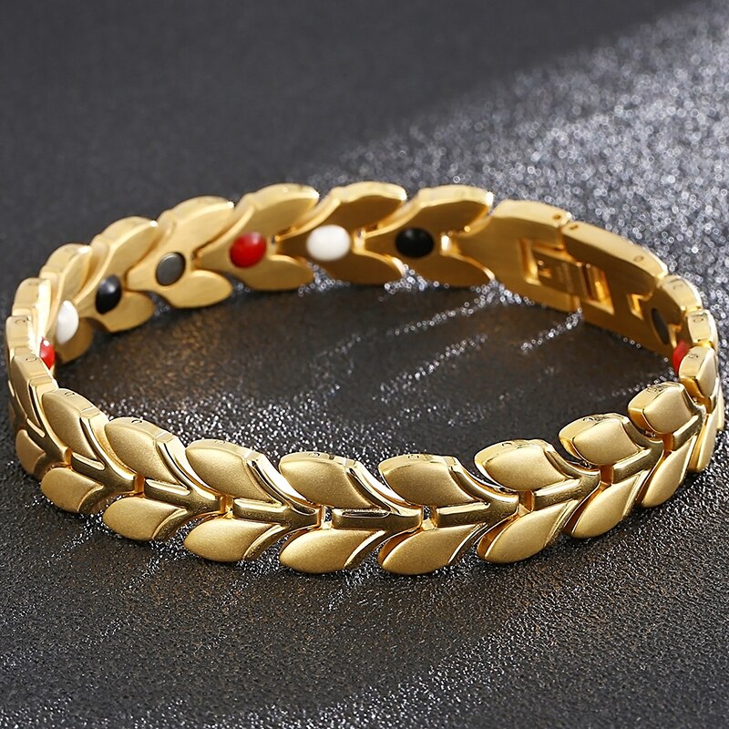 Pulsera magnética terapéutica 4 en 1 para hombre, de acero inoxidable chapado en oro, ideal como regalo de cumpleaños para papá y niño.