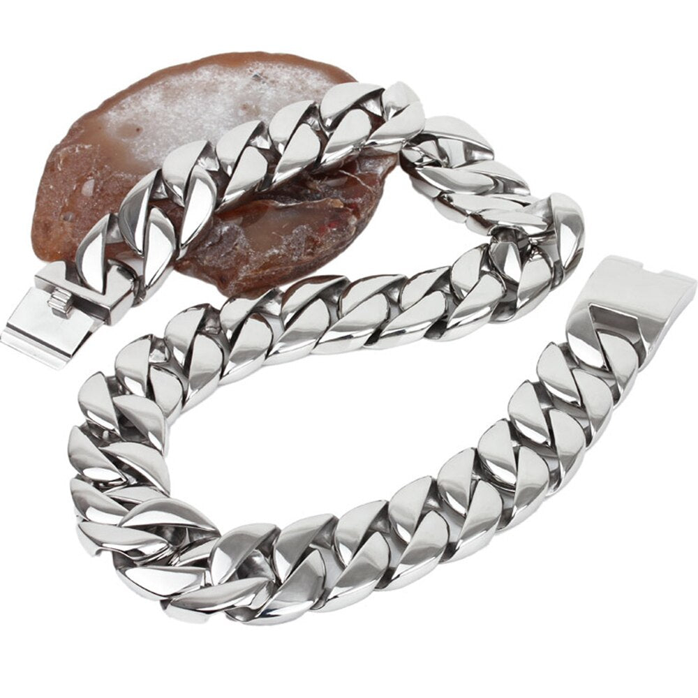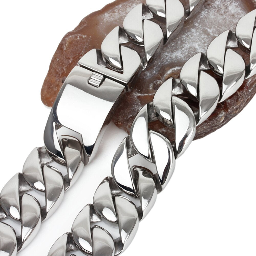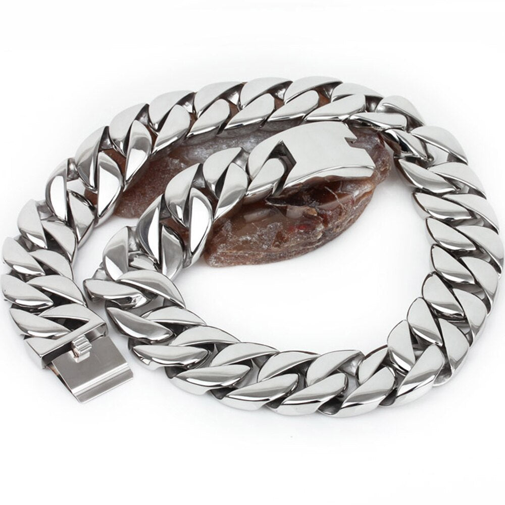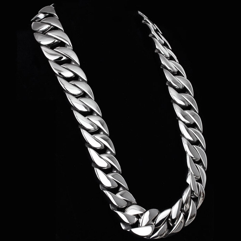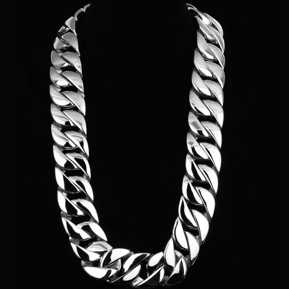 Collar de cadena de eslabones de 32 mm y 40-76 cm para hombre, de acero inoxidable pulido, estilo hip hop, accesorios de joyería.