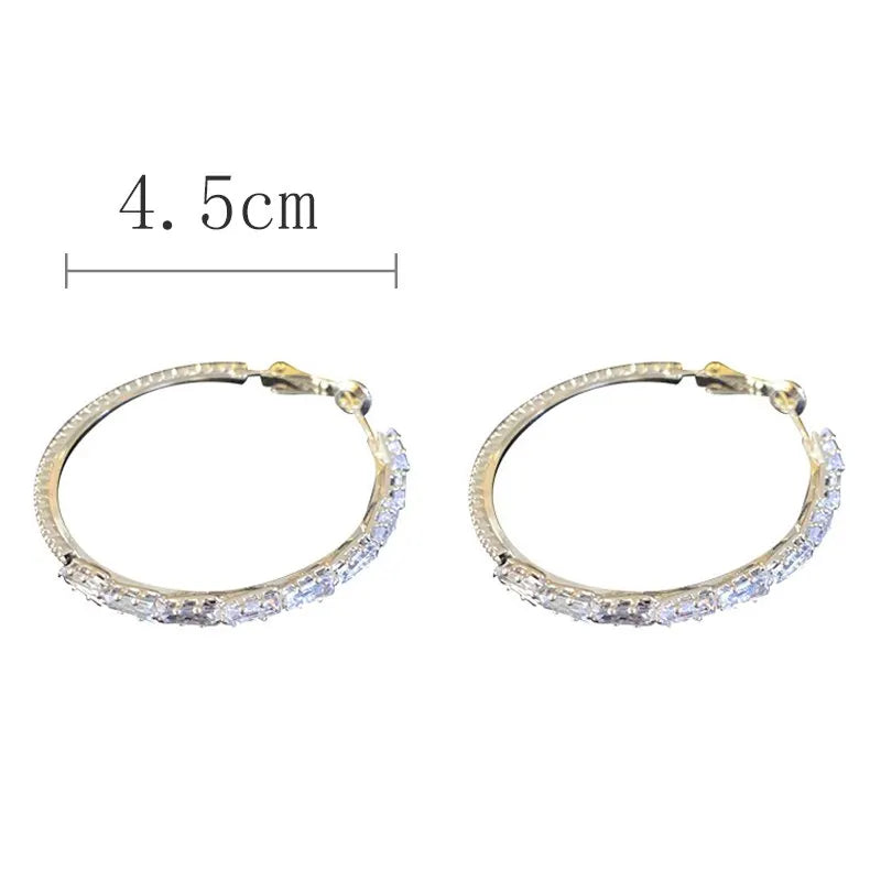 Pendientes de aro grandes de 45 mm para mujer, nuevos y modernos pendientes de diamantes de imitación, pendientes geométricos redondos con bucle, joyería para fiestas y bodas.