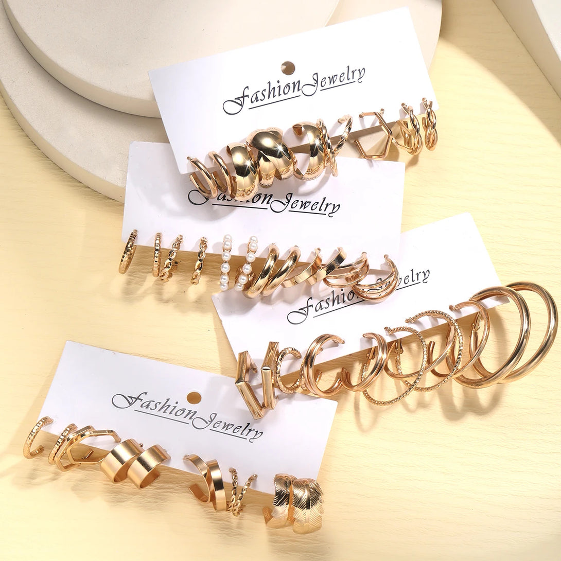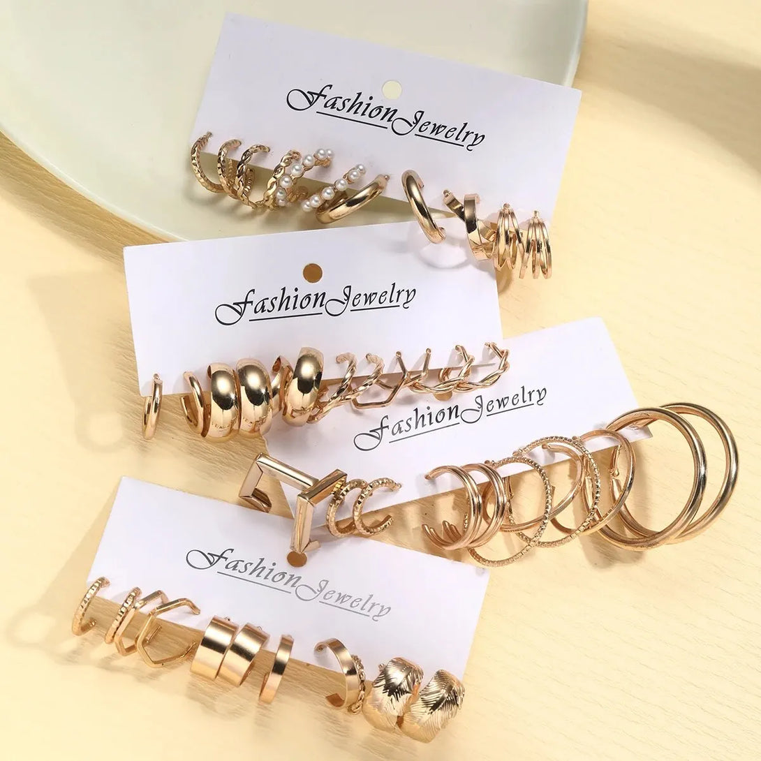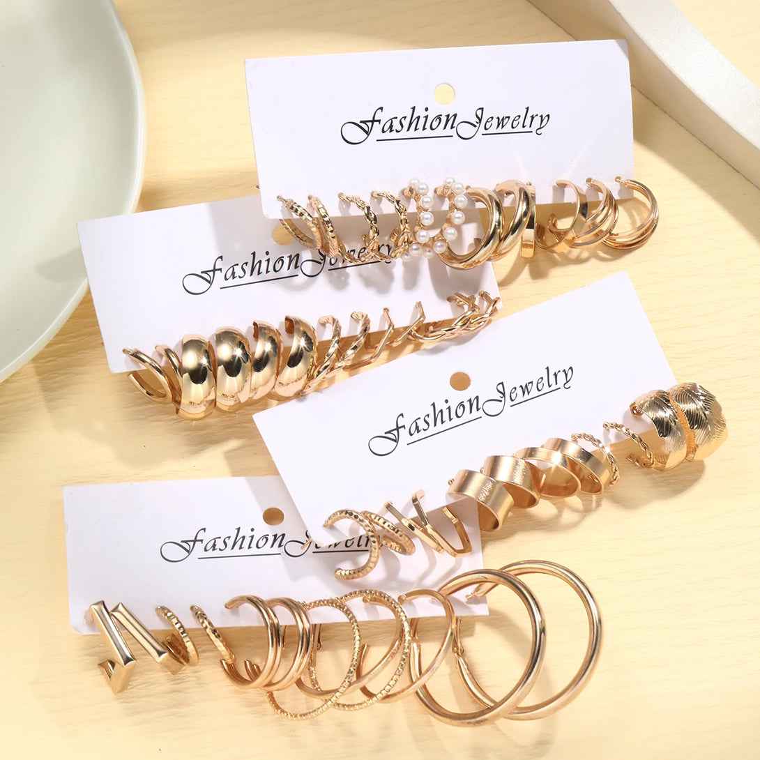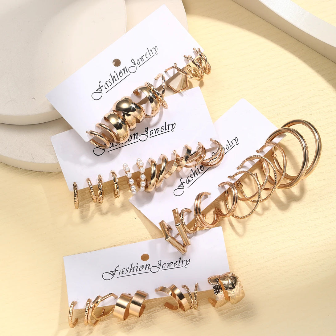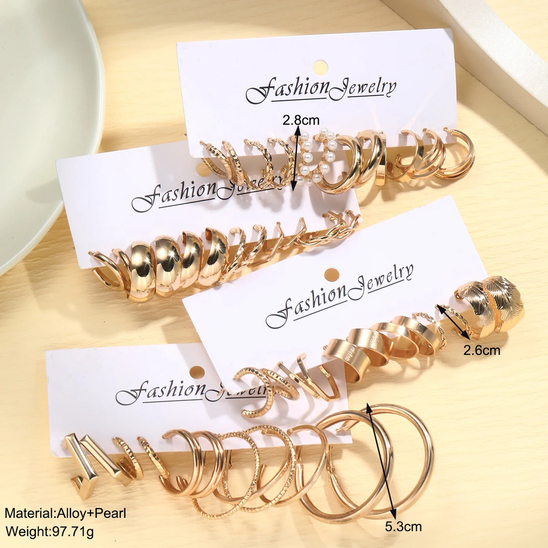 Juego de 48 pendientes de metal brillante, anchos, geométricos, dorados, retro, elegantes y a la moda para mujer, joyería para fiestas diarias.