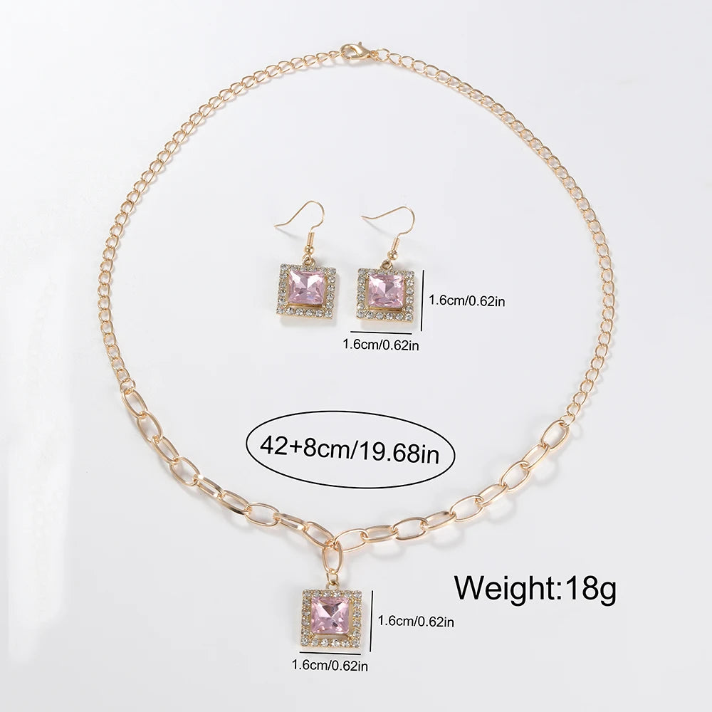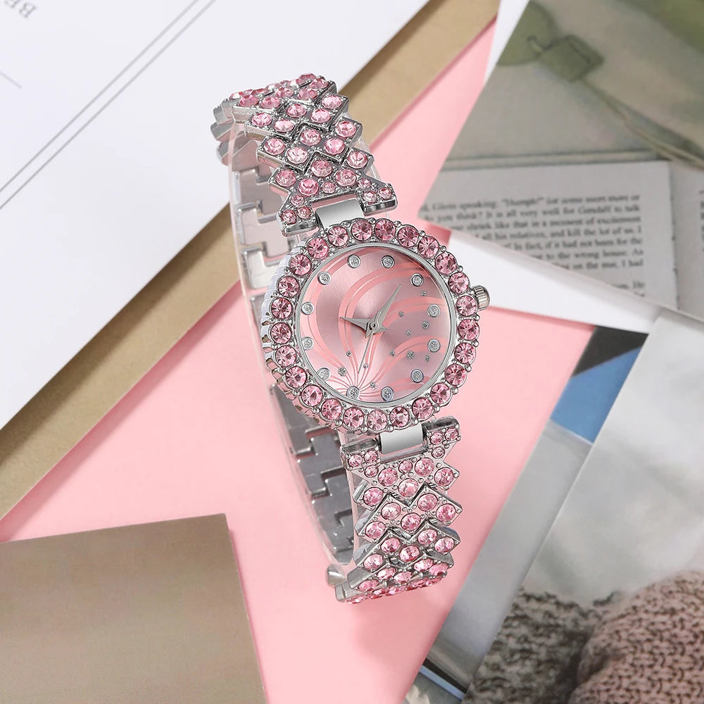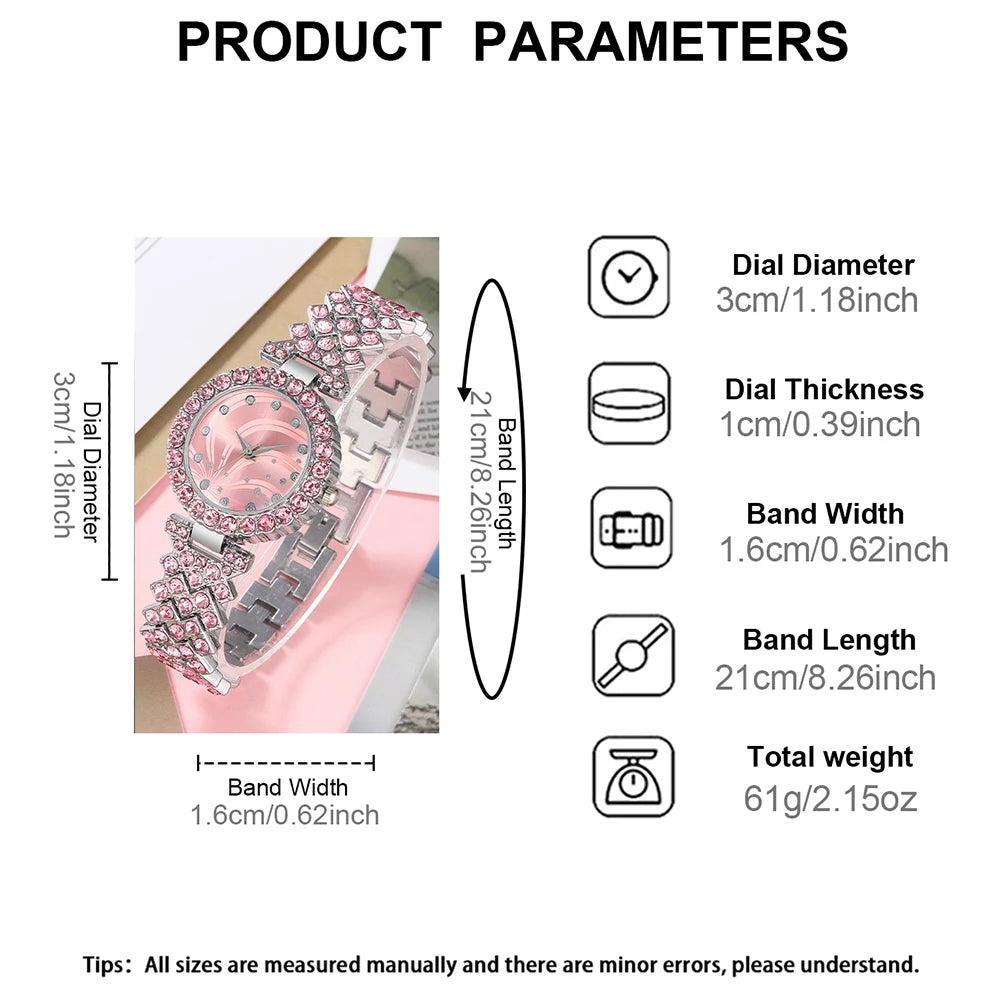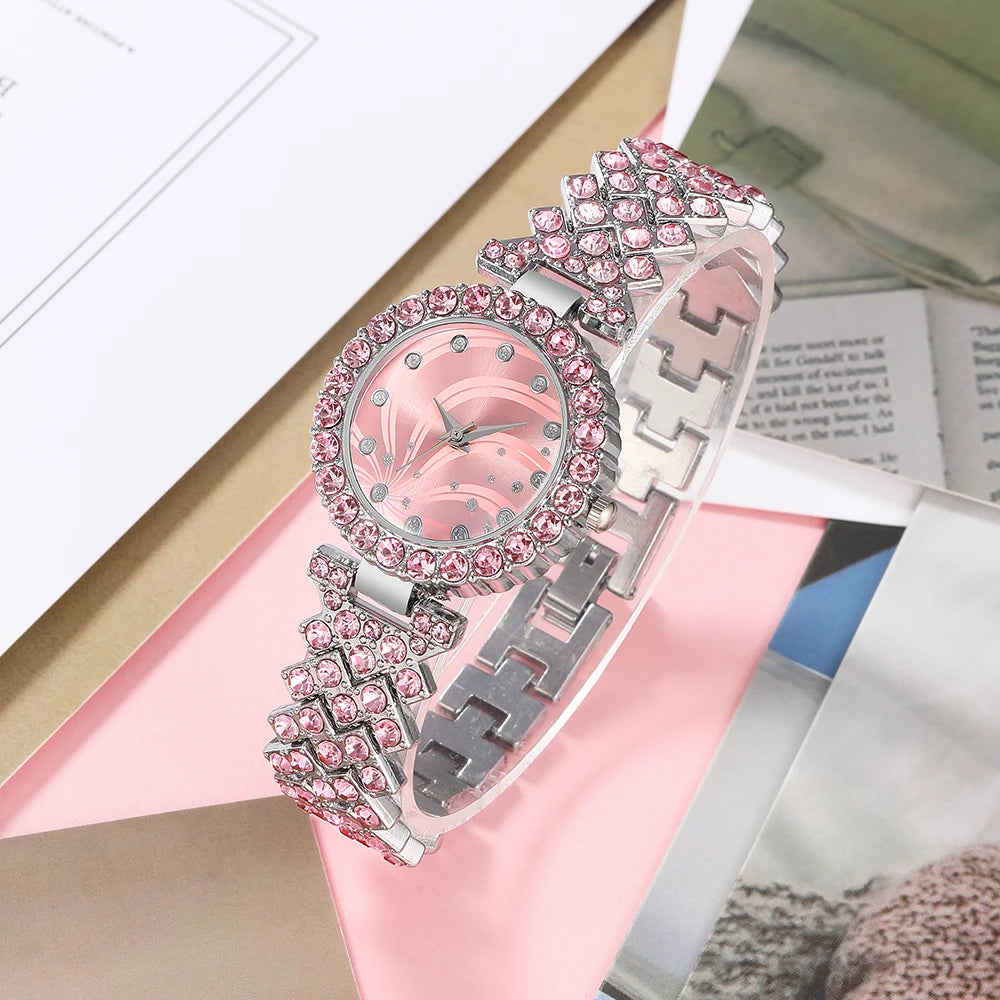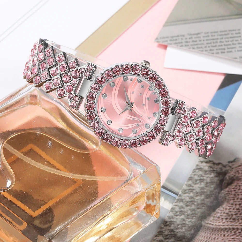 Conjunto de 4 relojes para mujer con diamantes de lujo, reloj de cuarzo informal, pendientes, collar y reloj.