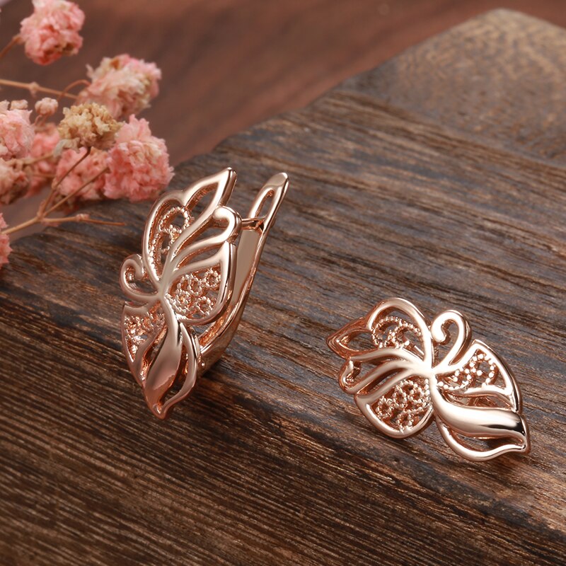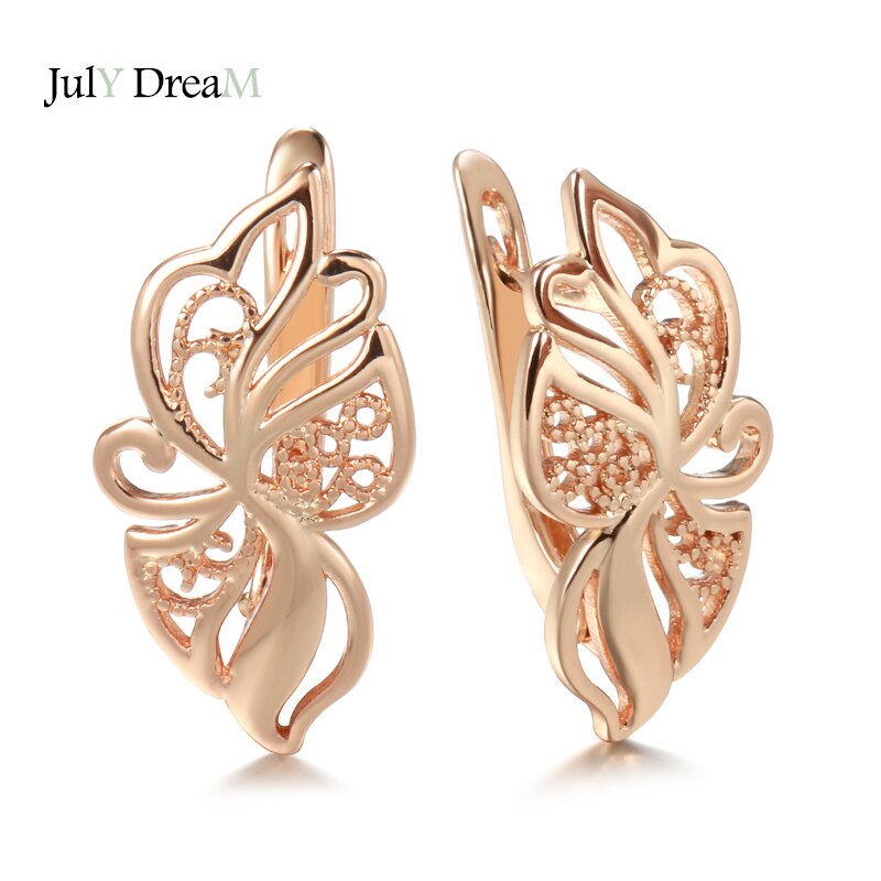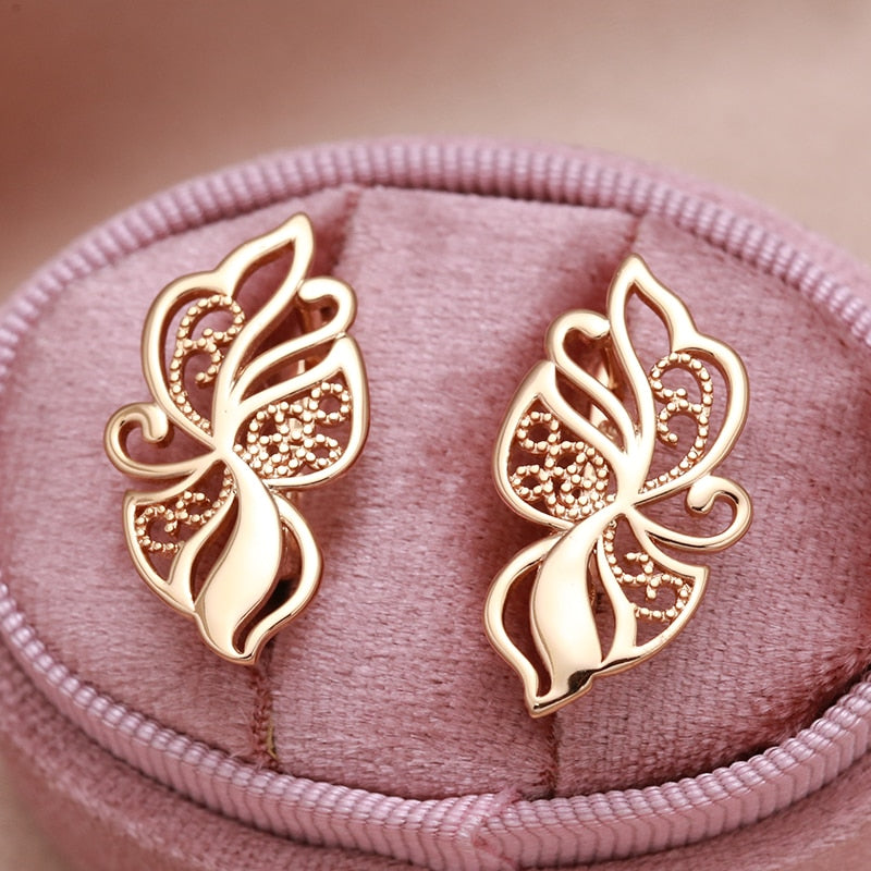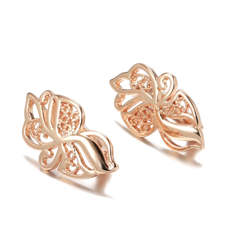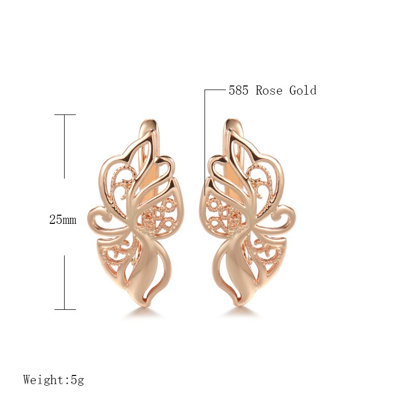 Joyería de oro 585 - Pendientes de clip con forma de flor de oro rosa 585, clásicos, grandes y brillantes, colgantes, para piercing en la oreja, pendientes de boda finos de moda, joyería