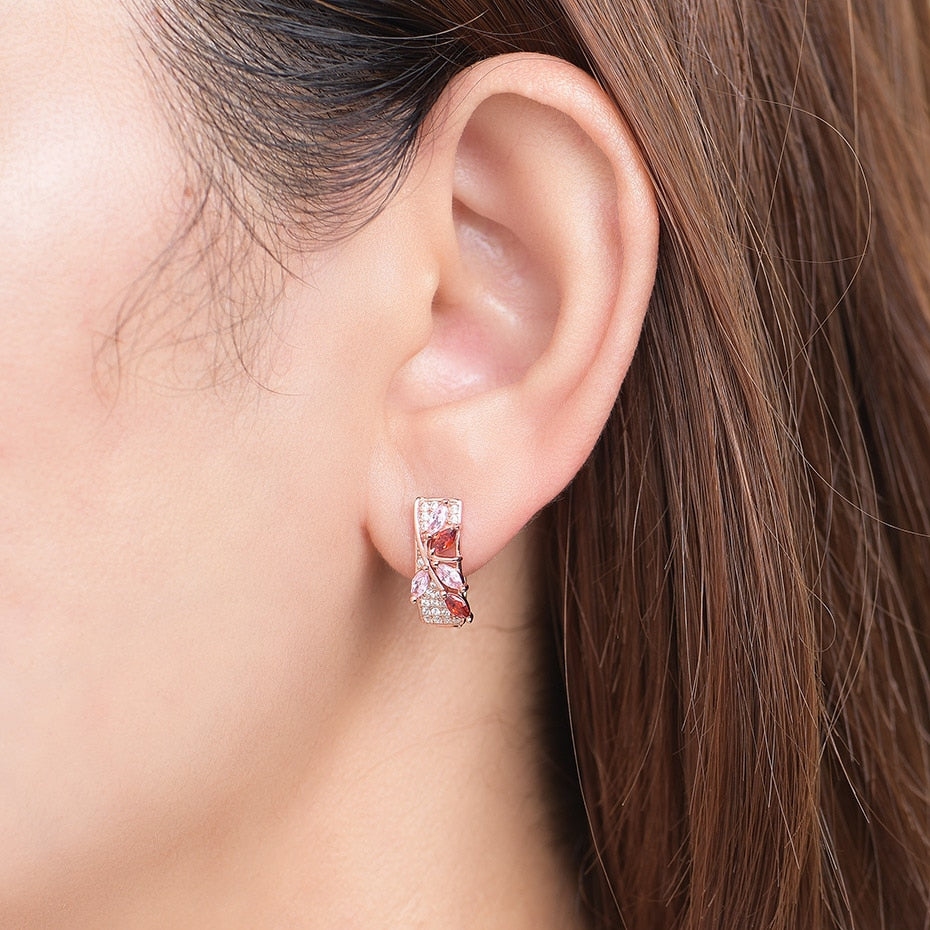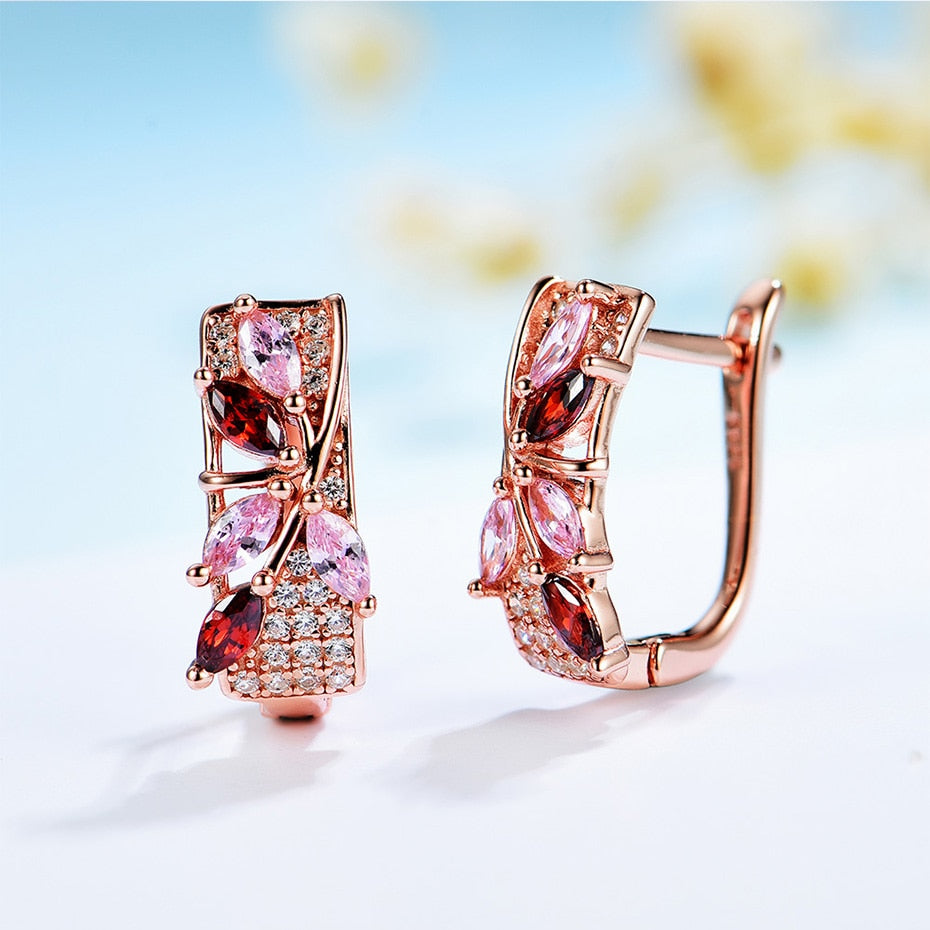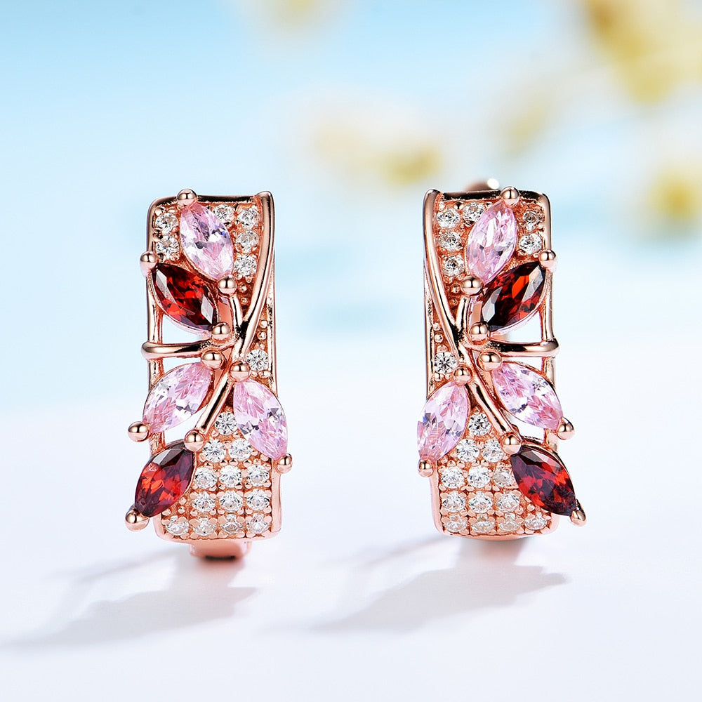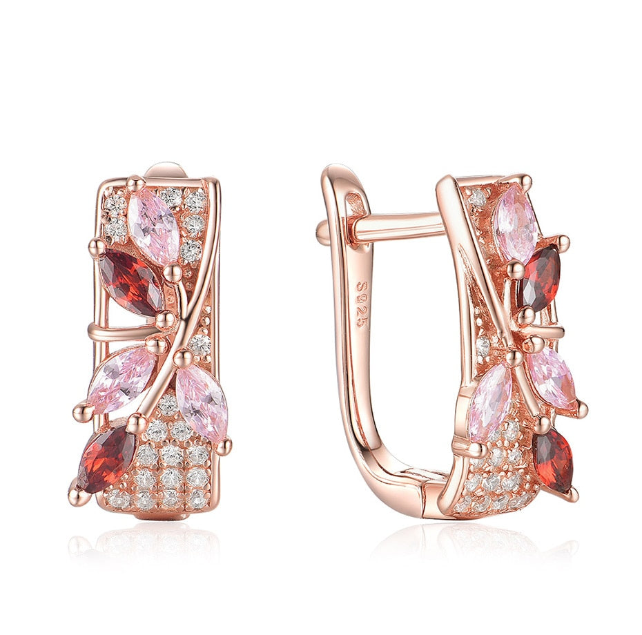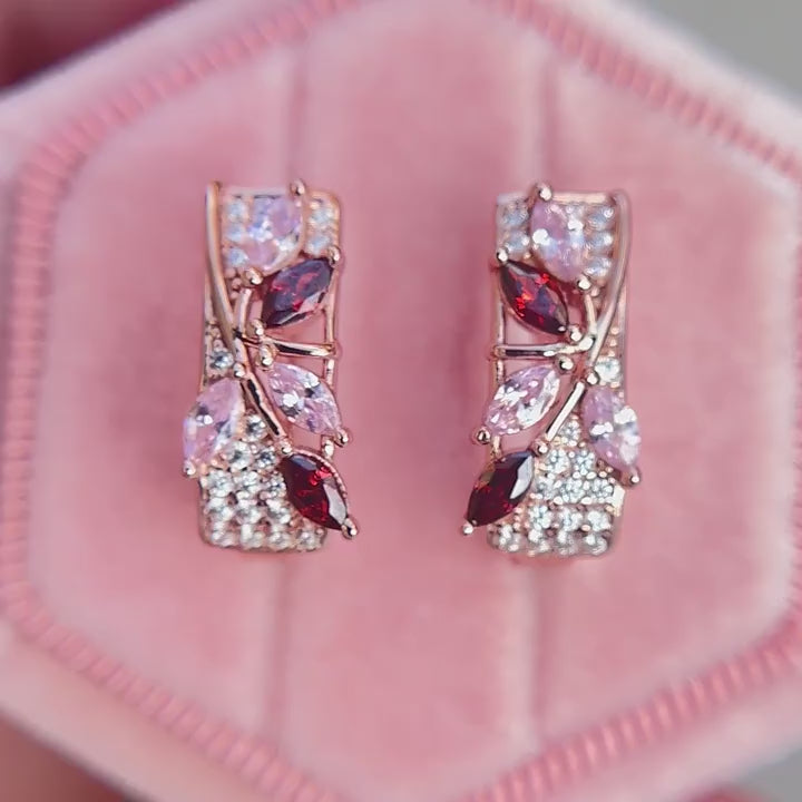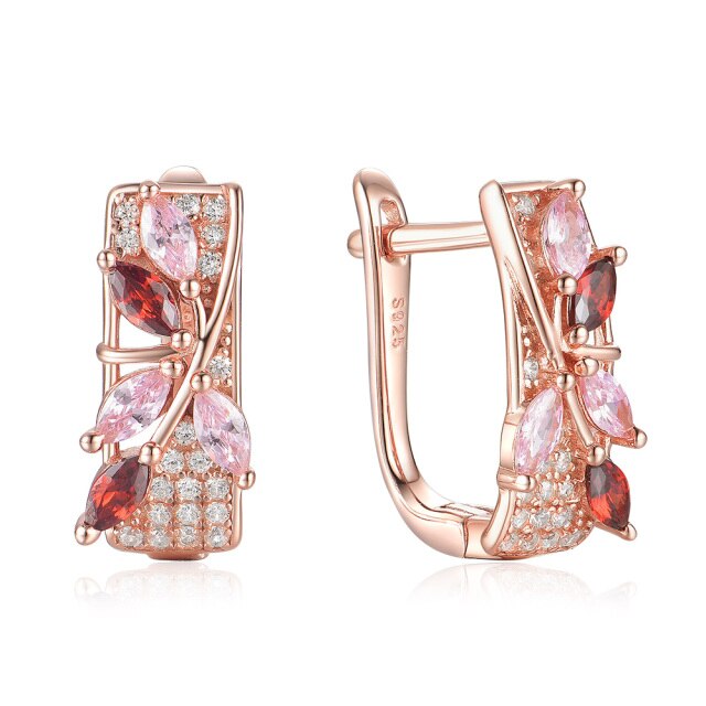 Pendientes de clip con gema de morganita y granate en oro rosa 585 para mujer