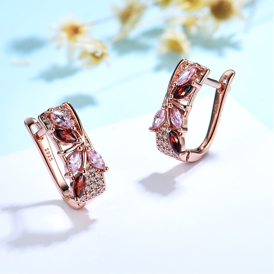Pendientes de moda: pendientes de clip con gema de morganita y granate en oro rosa 585 para mujer, pendientes marquesa de plata esterlina 925 maciza para niña.