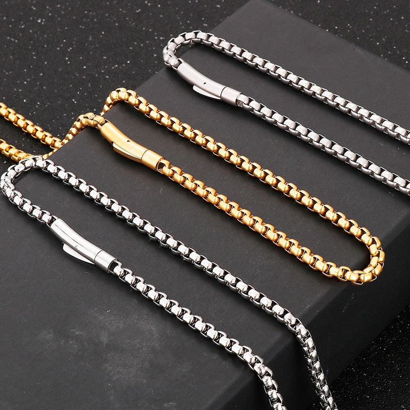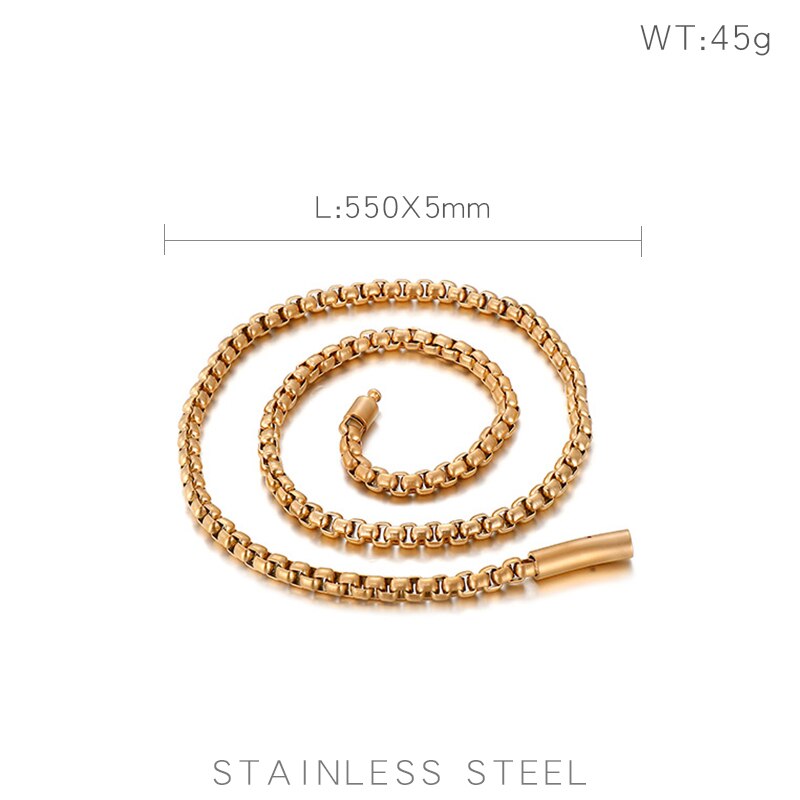 Cadena de eslabones de 5 mm para hombre y mujer, de acero inoxidable chapado en oro de 22 pulgadas.