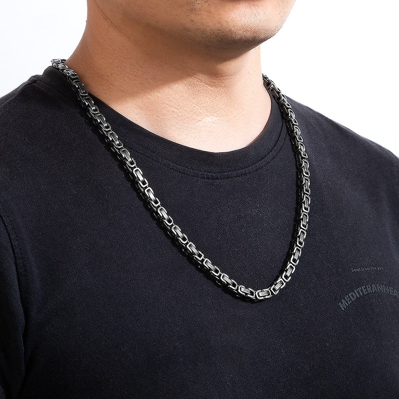 Collar largo estilo punk cubano vintage de acero inoxidable de 6,5 mm de ancho para hombre.