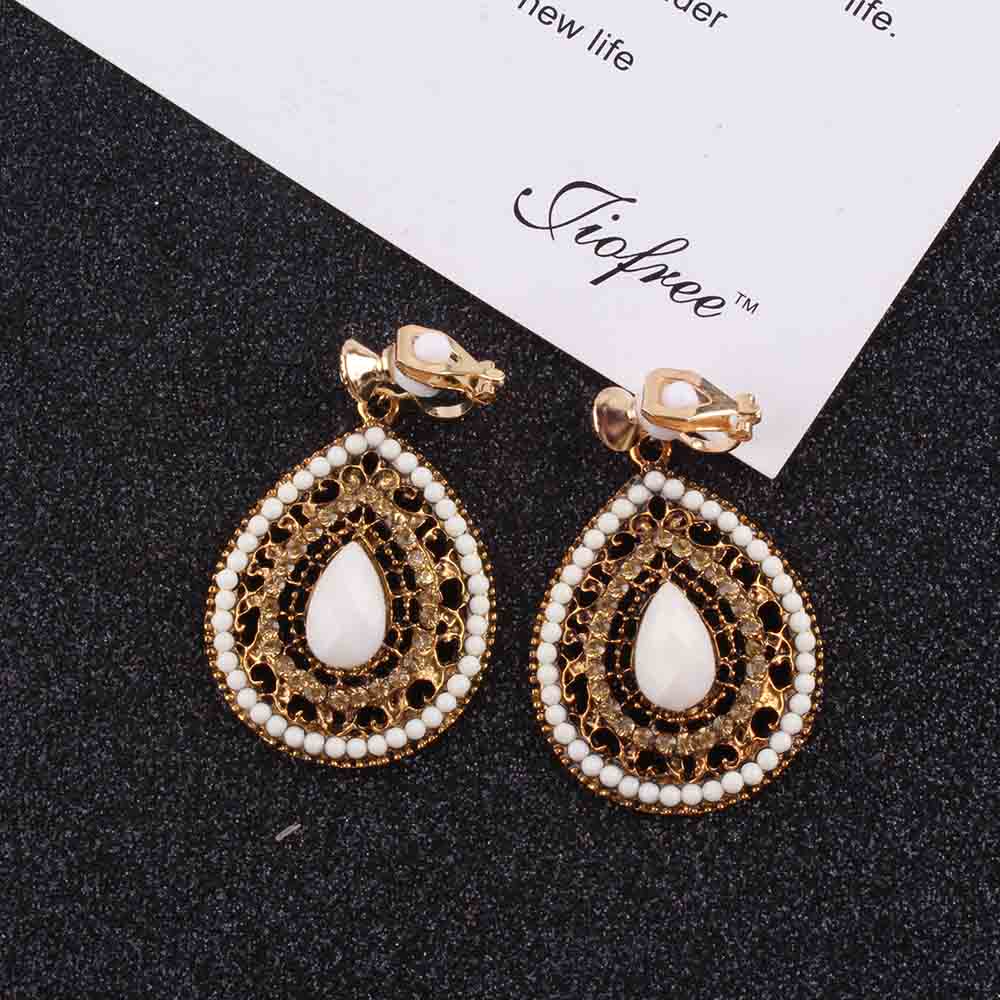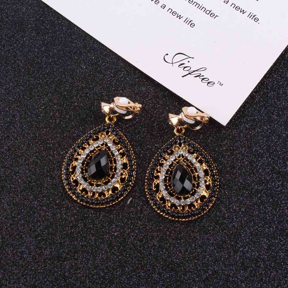 Pendientes de moda - Nuevos pendientes de fiesta de 6 colores, bisutería bohemia, pendientes de clip de cristal llamativos sin perforación, joyería étnica vintage turca bohemia