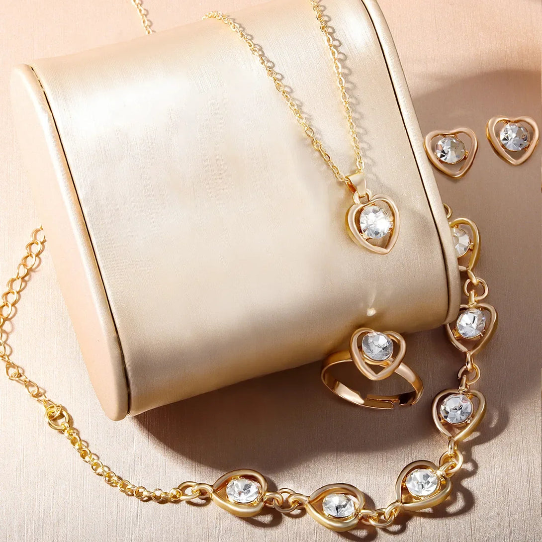 Conjunto de 6 piezas de joyería de diamantes de imitación de lujo para mujer, anillo, collar, pendientes y pulsera.