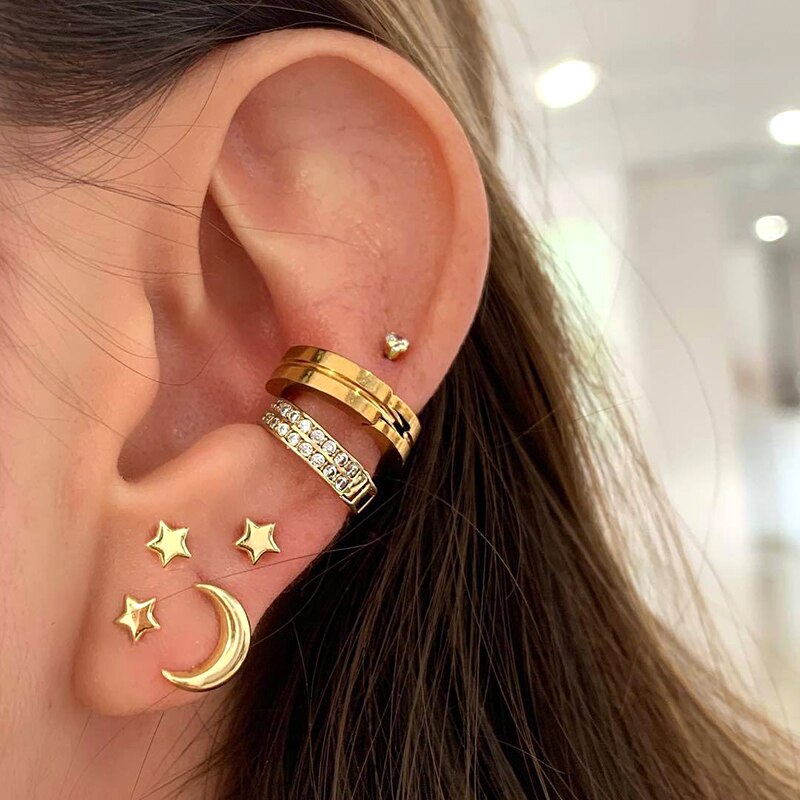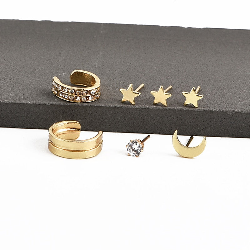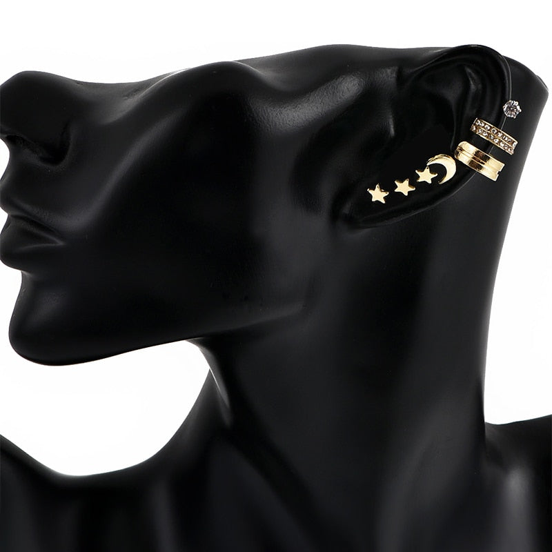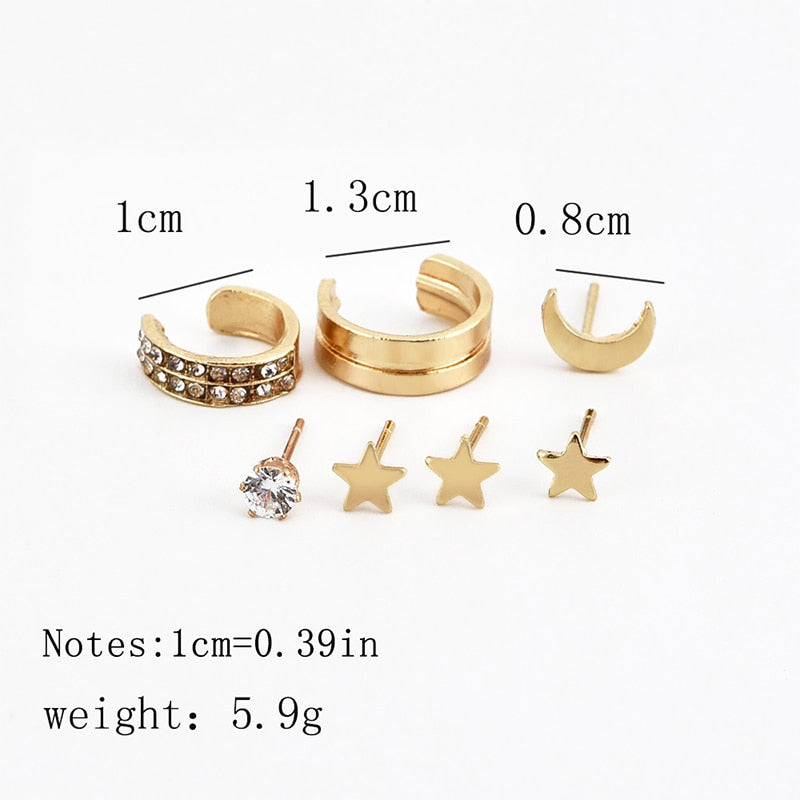 Pendientes de moda - Juego de 7 pendientes con forma de estrella, luna y cristal, con clip, estilo punk, sin perforar el cartílago.