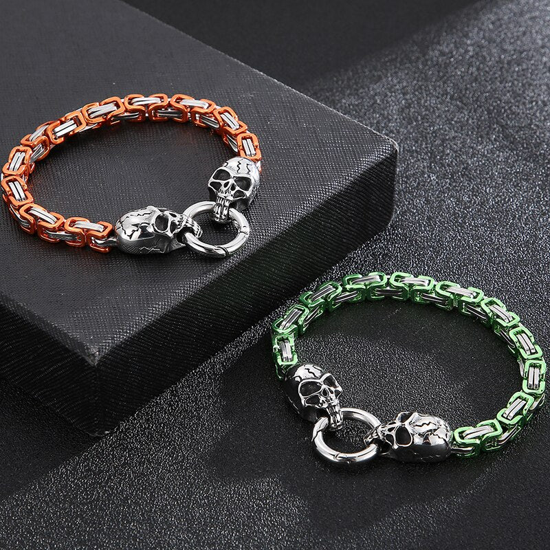 Pulsera gótica de motociclista con calavera de acero inoxidable 316L de 8,6 pulgadas para hombre