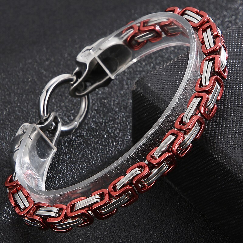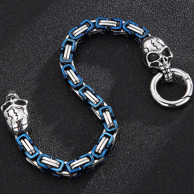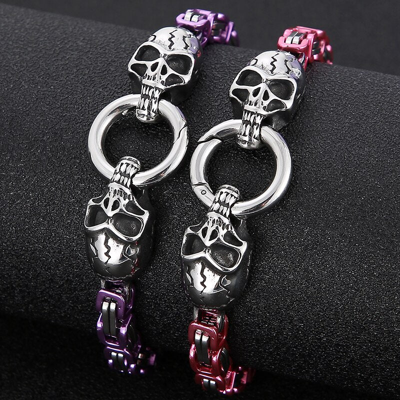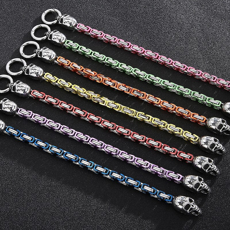 Pulsera gótica de motociclista con calavera de acero inoxidable 316L de 8,6 pulgadas para hombre, cadena de eslabones roja y azul de 6 mm, joyería punk.