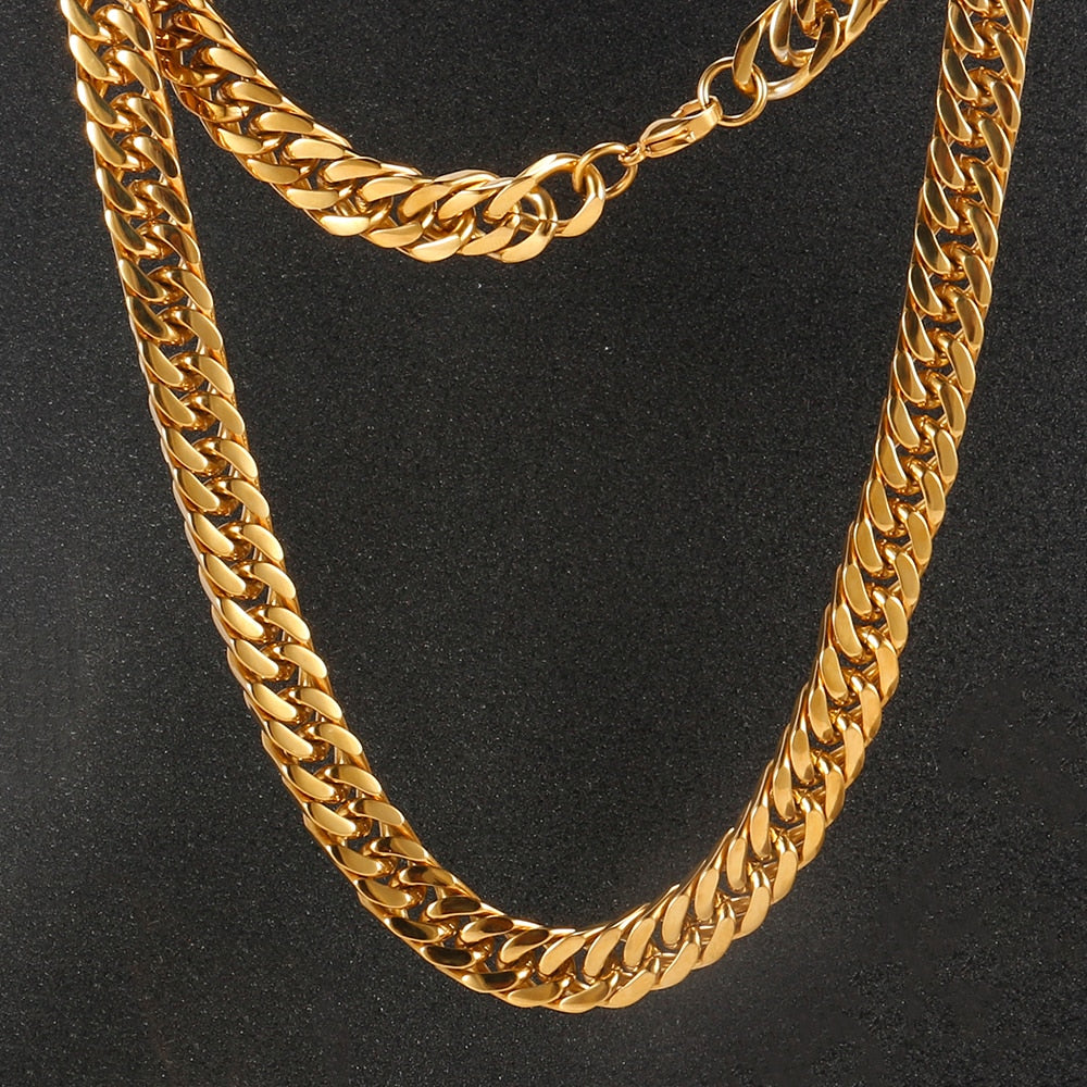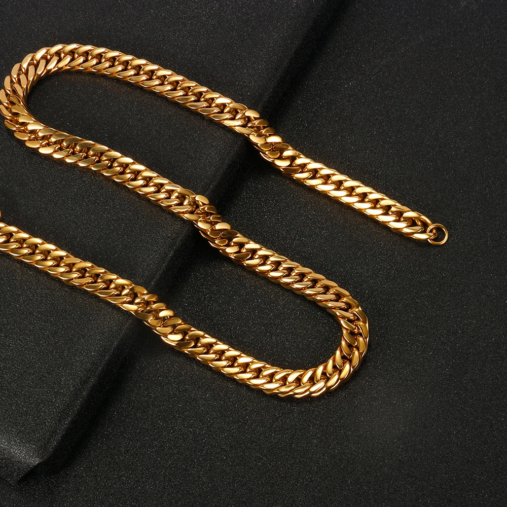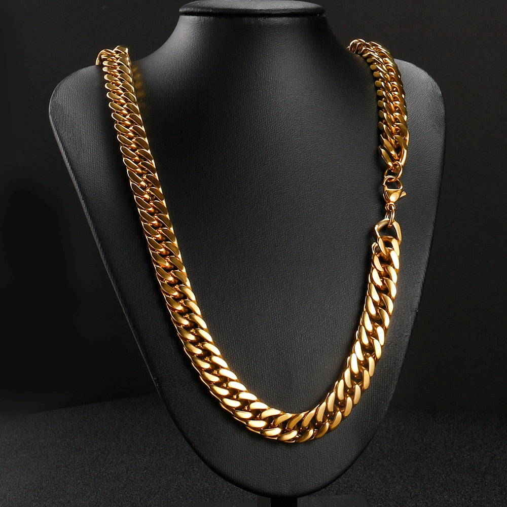 Collar cubano Miami de acero inoxidable de 8 mm a 14 mm con cadena de eslabones cubanos clásicos dorados y plateados.