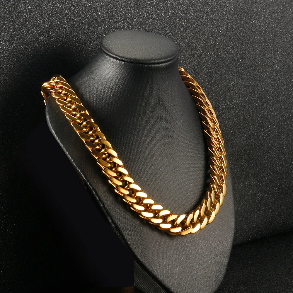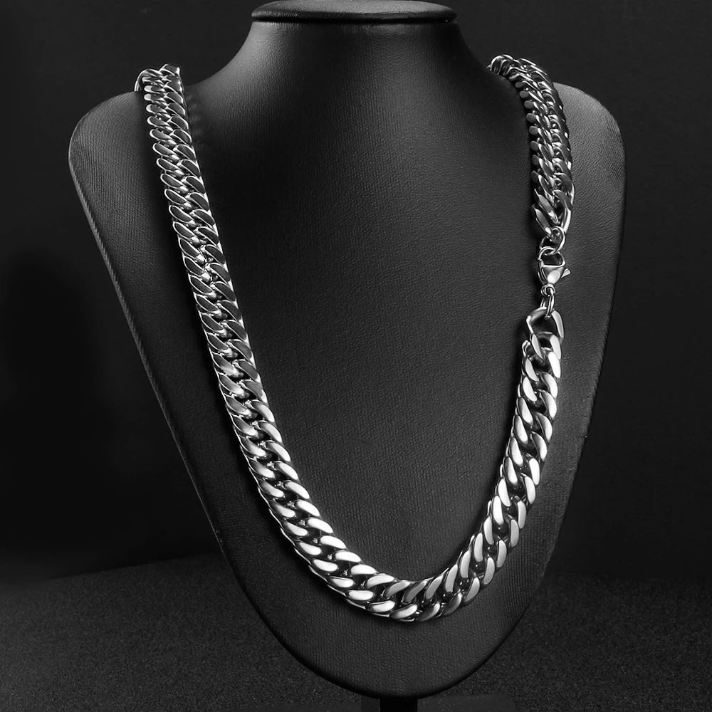 Collar cubano Miami de acero inoxidable de 8 mm a 14 mm, cadena gargantilla clásica de eslabones cubanos dorados y plateados, joyería de hip hop para hombre, regalo