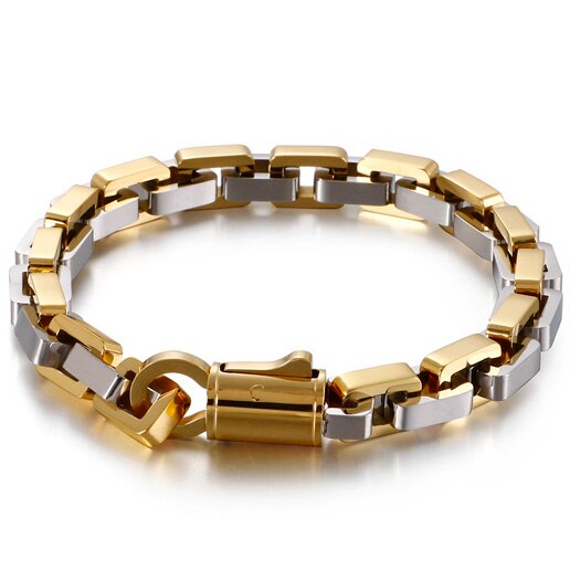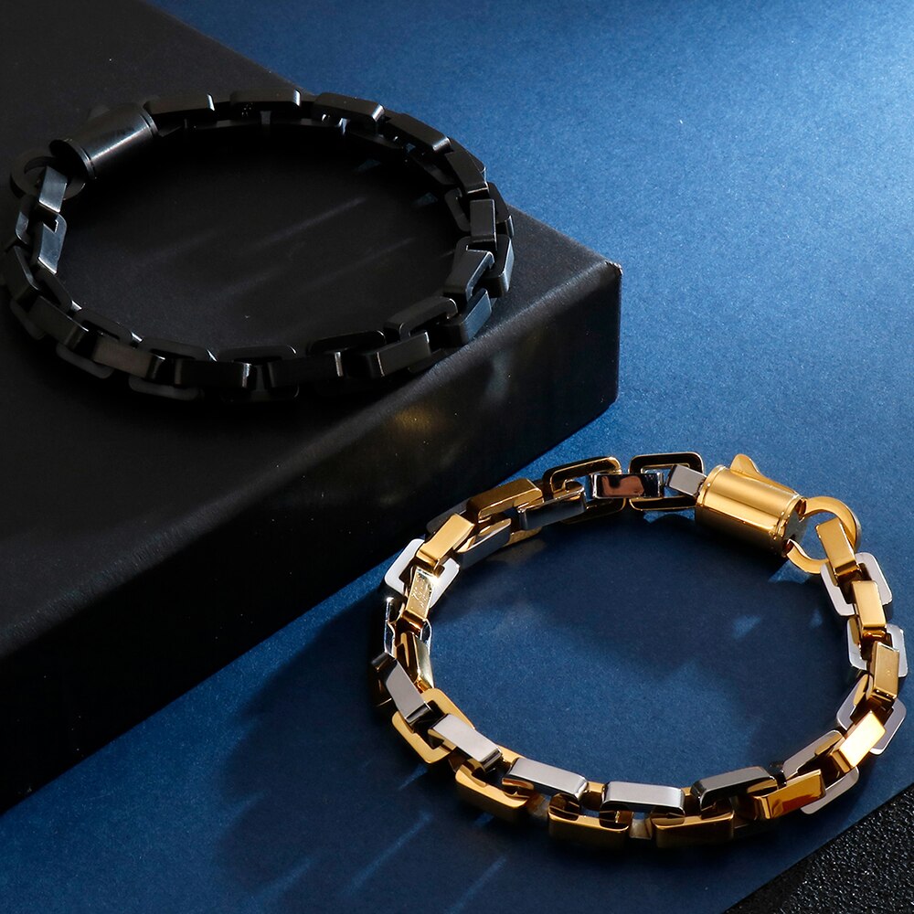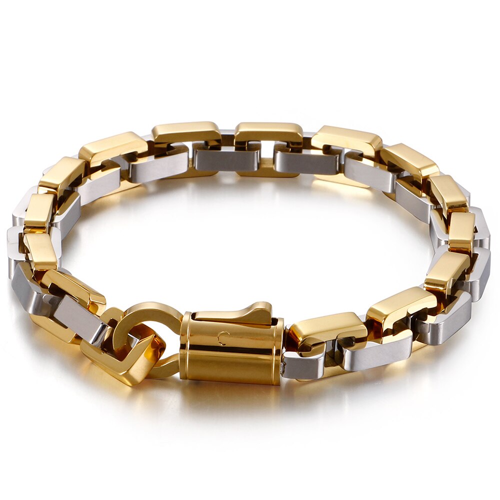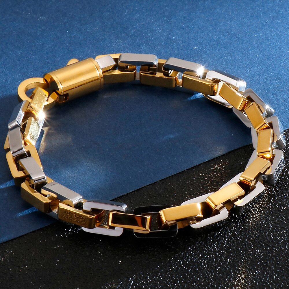 Pulsera de hombre con cadena entrelazada de acero inoxidable chapada en oro de 8 mm
