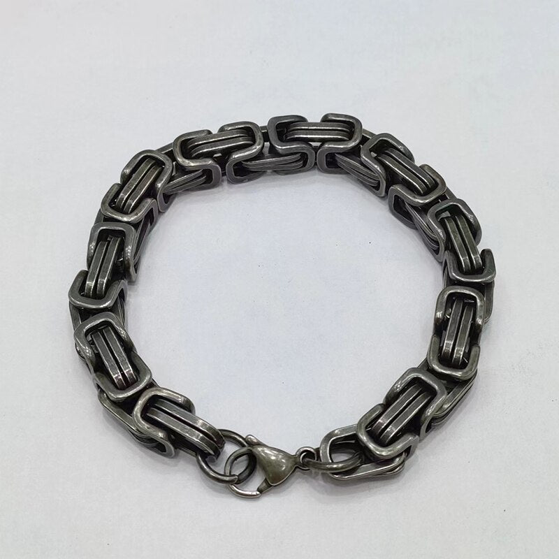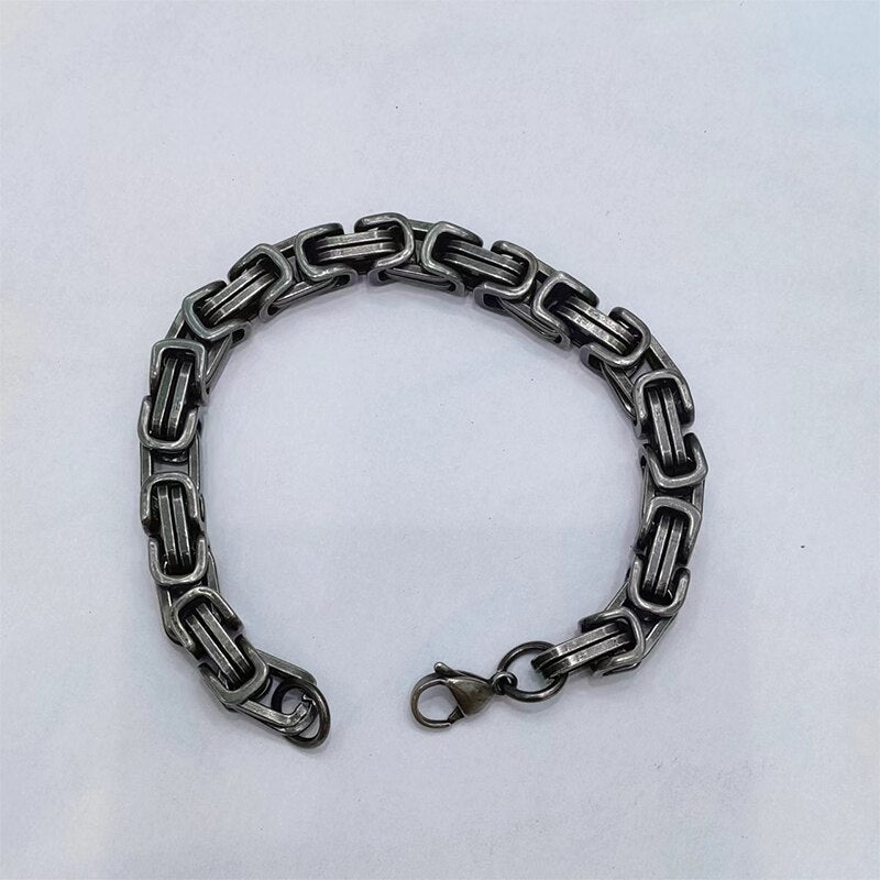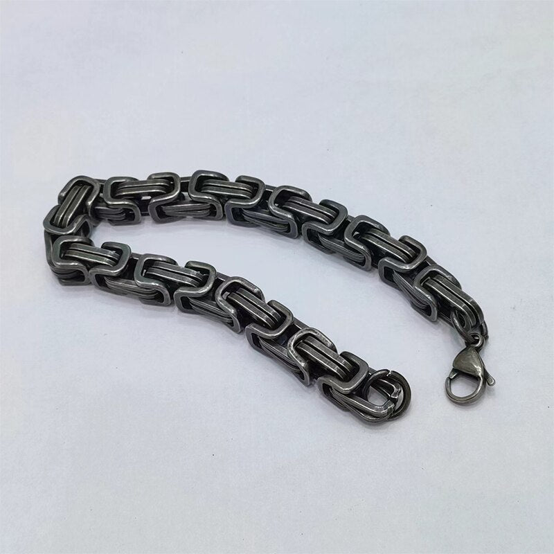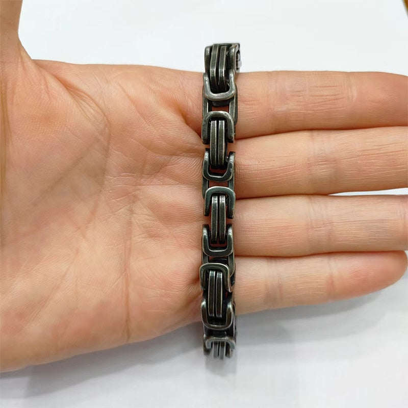Pulsera de eslabones de cadena vintage para hombre, de 8 mm, hecha a mano, de acero inoxidable, estilo punk rock, para motocicleta.