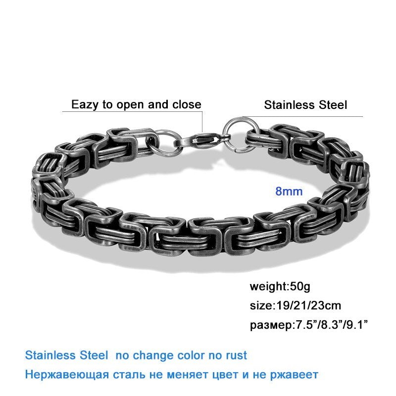 Pulsera de 8 mm para hombre, estilo vintage, de acero inoxidable, estilo punk rock, hecha a mano, con cadena de eslabones, para motocicleta, accesorios de joyería para novio.