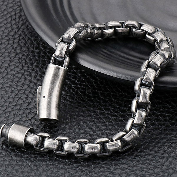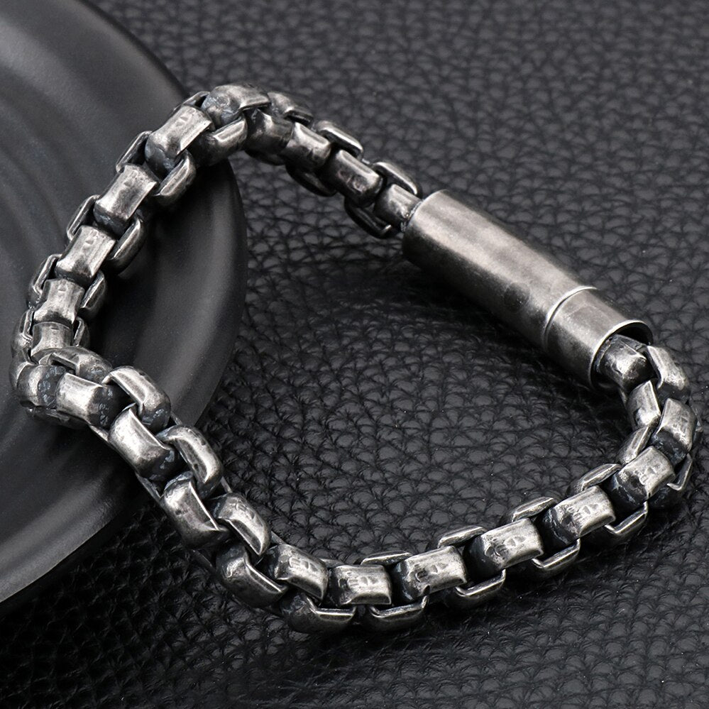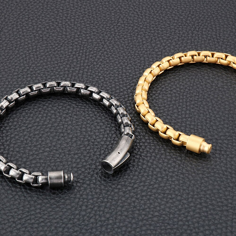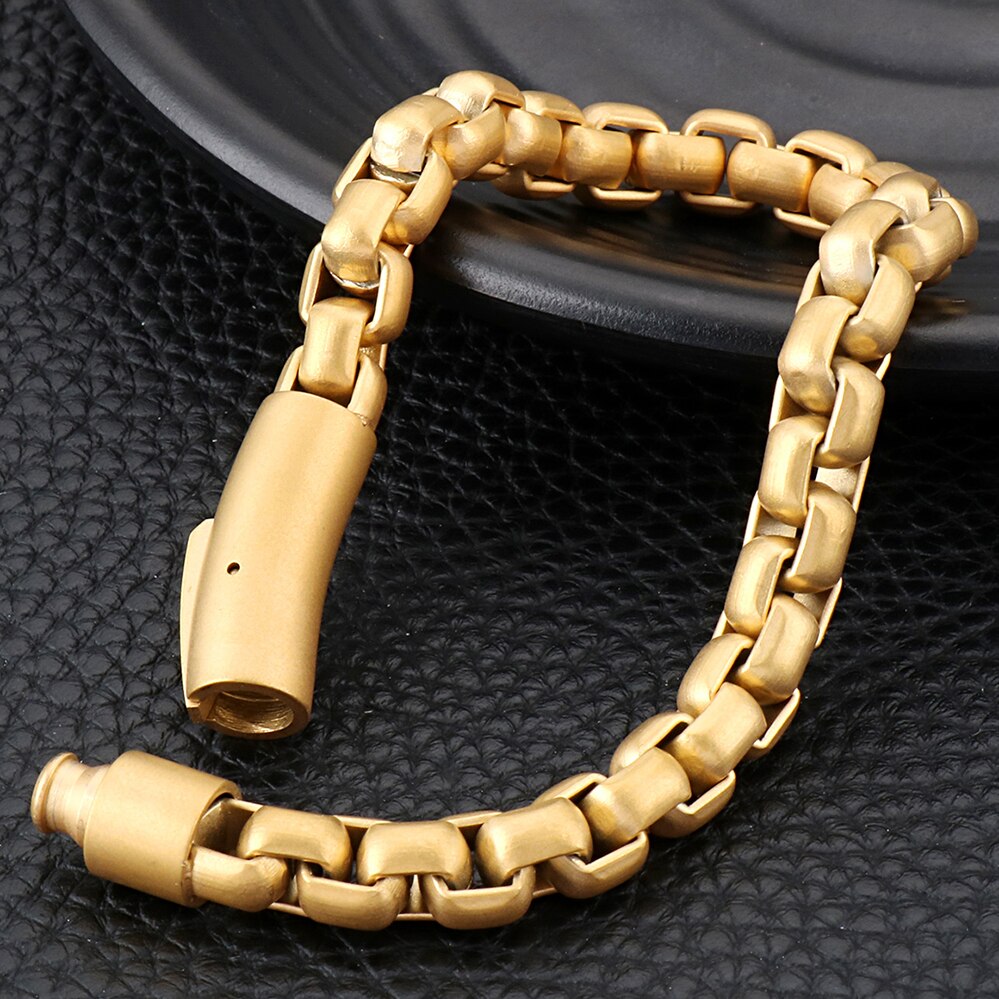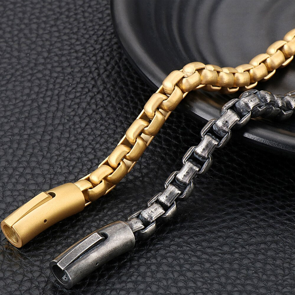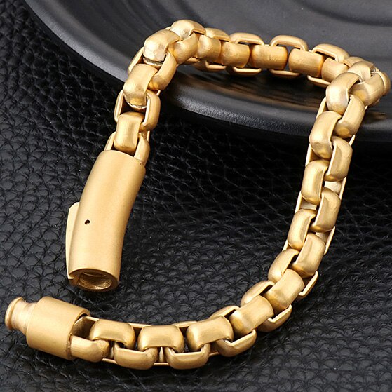 Pulsera de cadena de acero inoxidable de 8 mm de grosor para hombre, estilo vintage, bañada en oro.