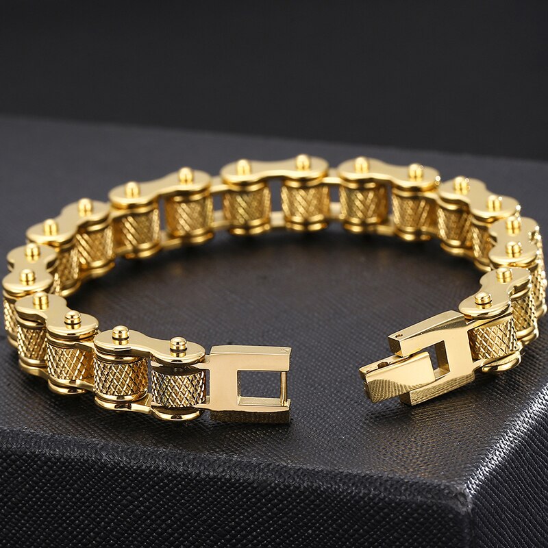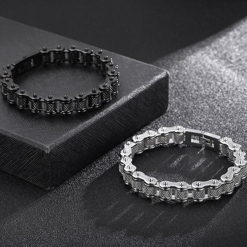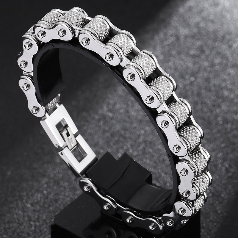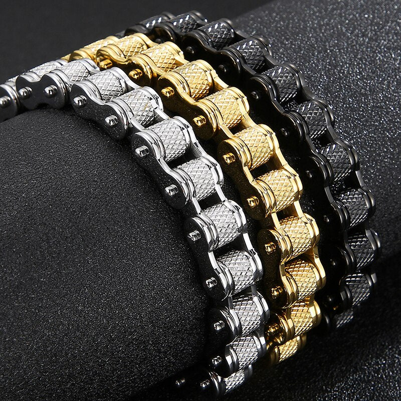 Pulsera de cadena de bicicleta para hombre de acero inoxidable de 23 cm y 11 mm. Pulsera ciclista rockera. Accesorios de joyería.