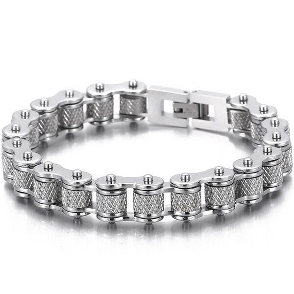Pulsera de cadena de bicicleta para hombre de acero inoxidable de 9" y 11 mm. Pulsera de ciclismo rock and roll.