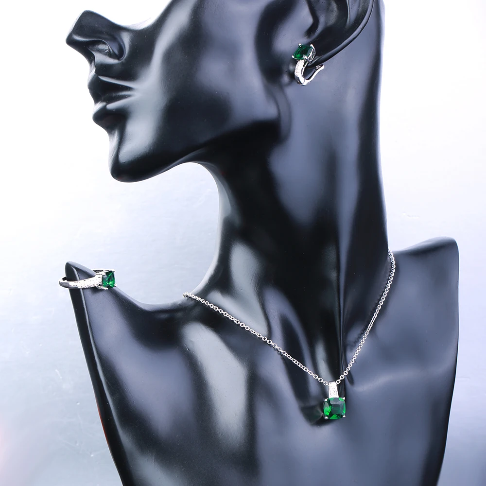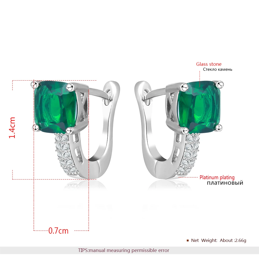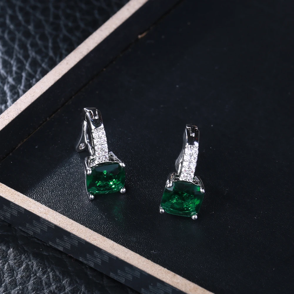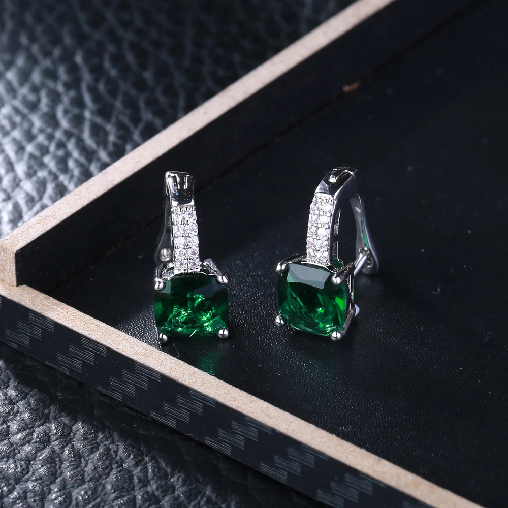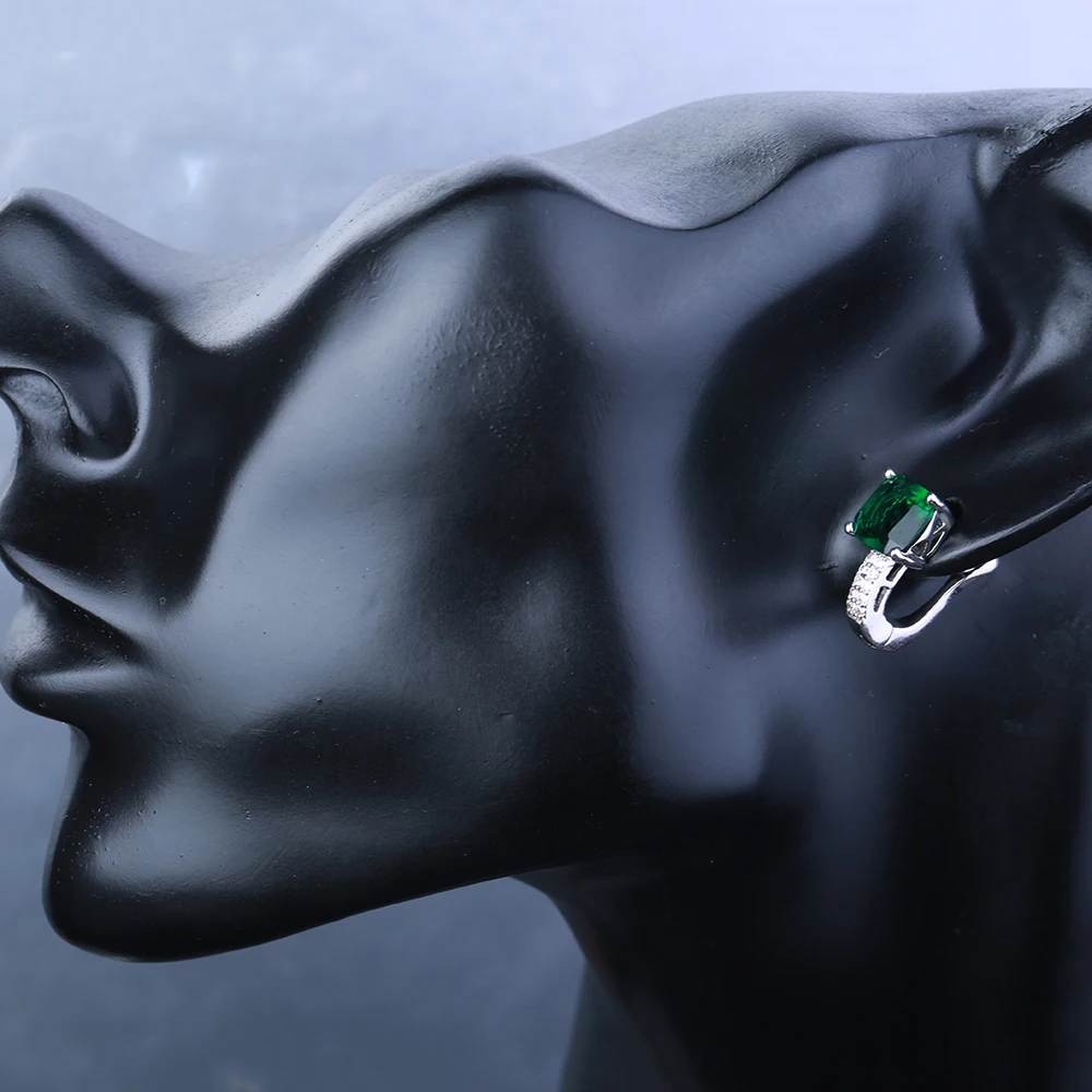 Pendientes de moda - Joyería de plata 925, pendientes vintage de clip para mujer con diamantes de circonita verde, pendientes de moda para bodas y fiestas.
