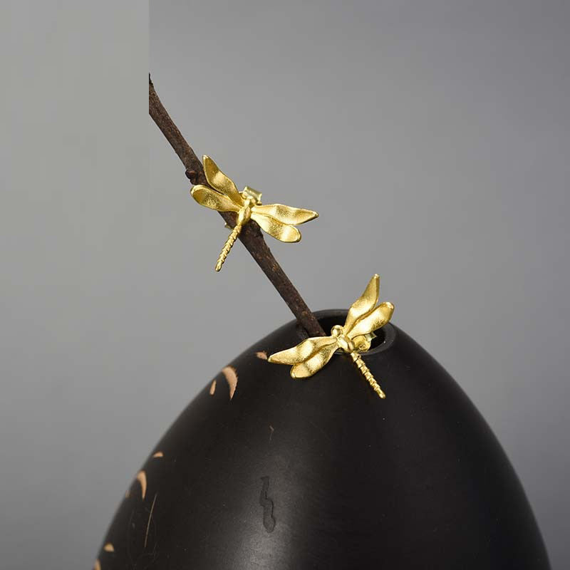 Pendientes de moda: adorables pendientes de libélula diminuta de plata de ley 925 auténtica para mujer, joyería fina de oro de 18 quilates, regalos para niñas.