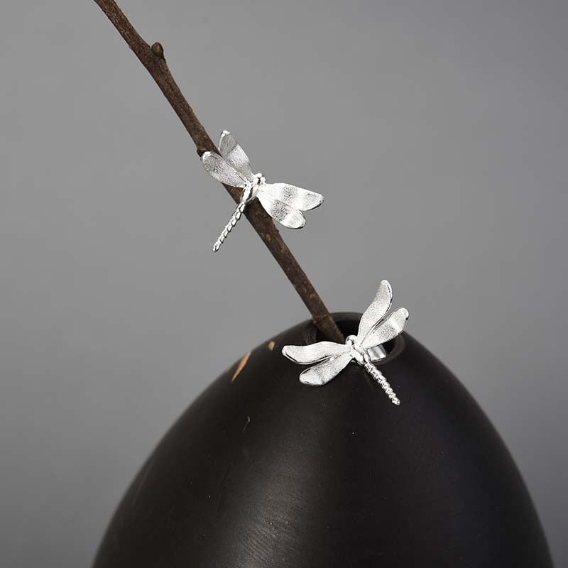 Pendientes de libélula diminuta de plata de ley 925 para mujer