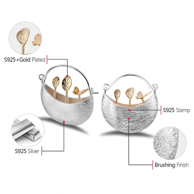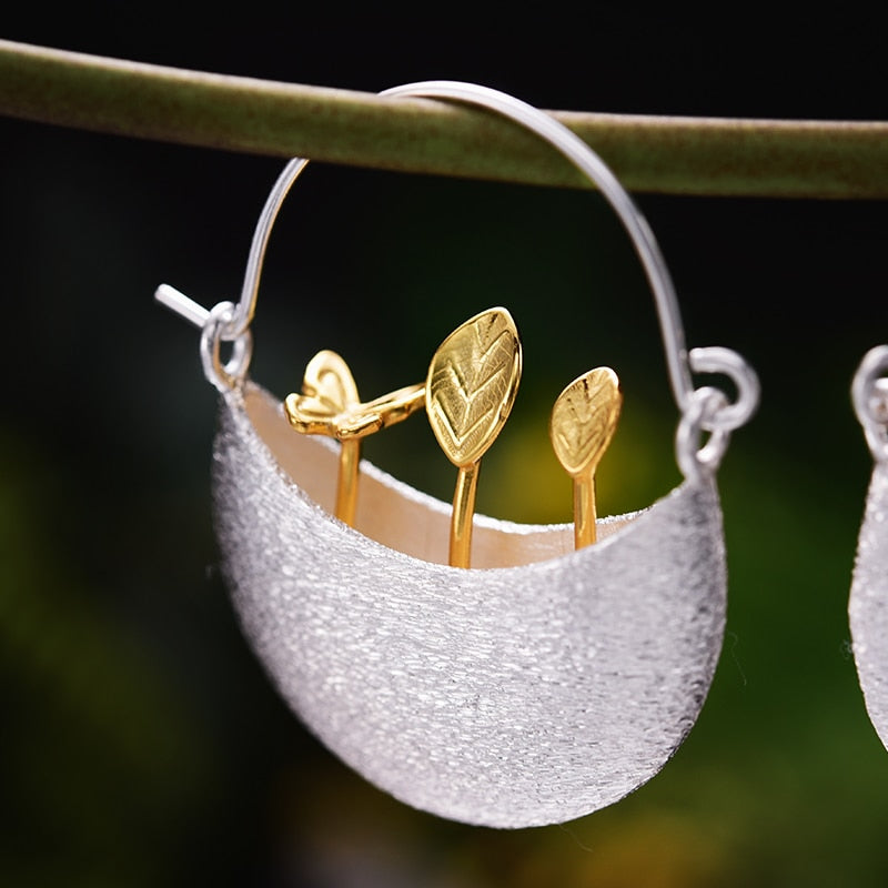 Pendientes de moda: auténtica plata de ley 925, joyería fina, natural, creativa, hecha a mano, pendientes colgantes My Little Garden para mujer, regalo