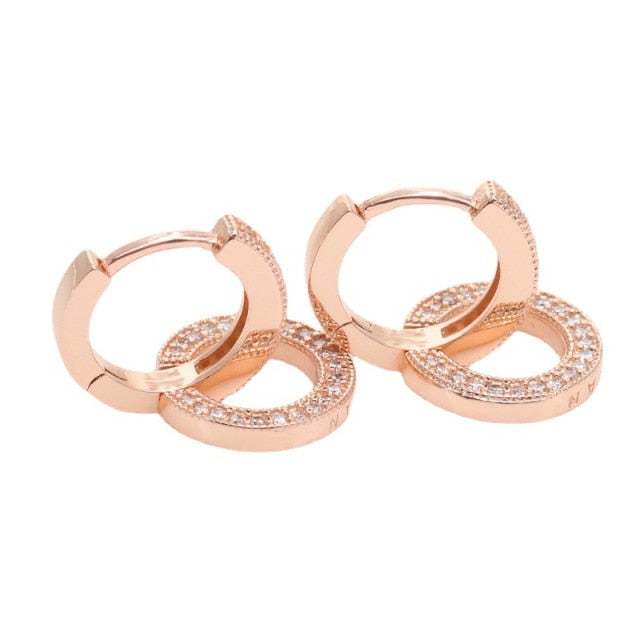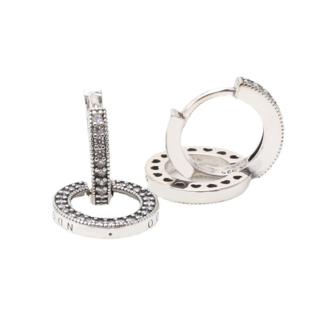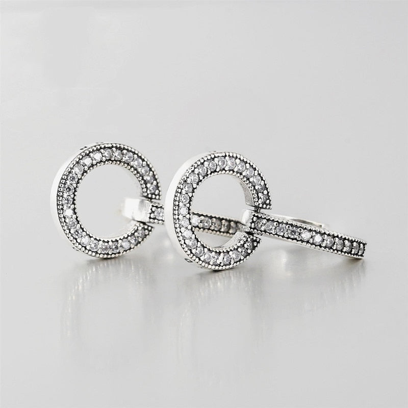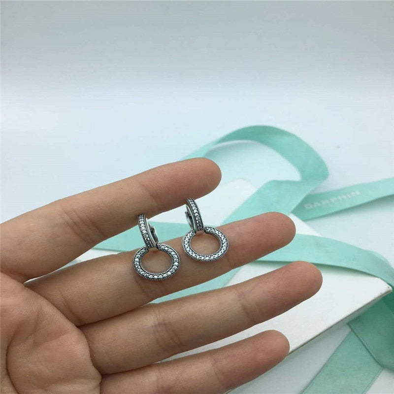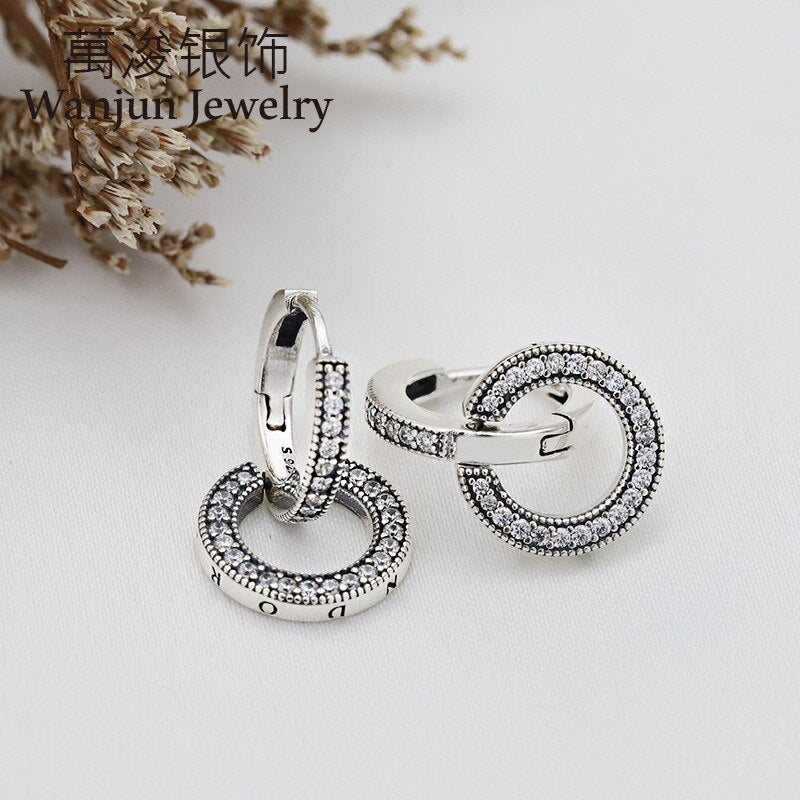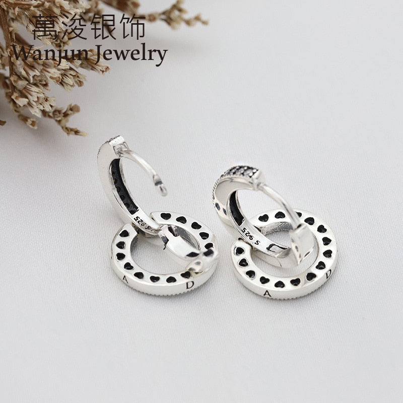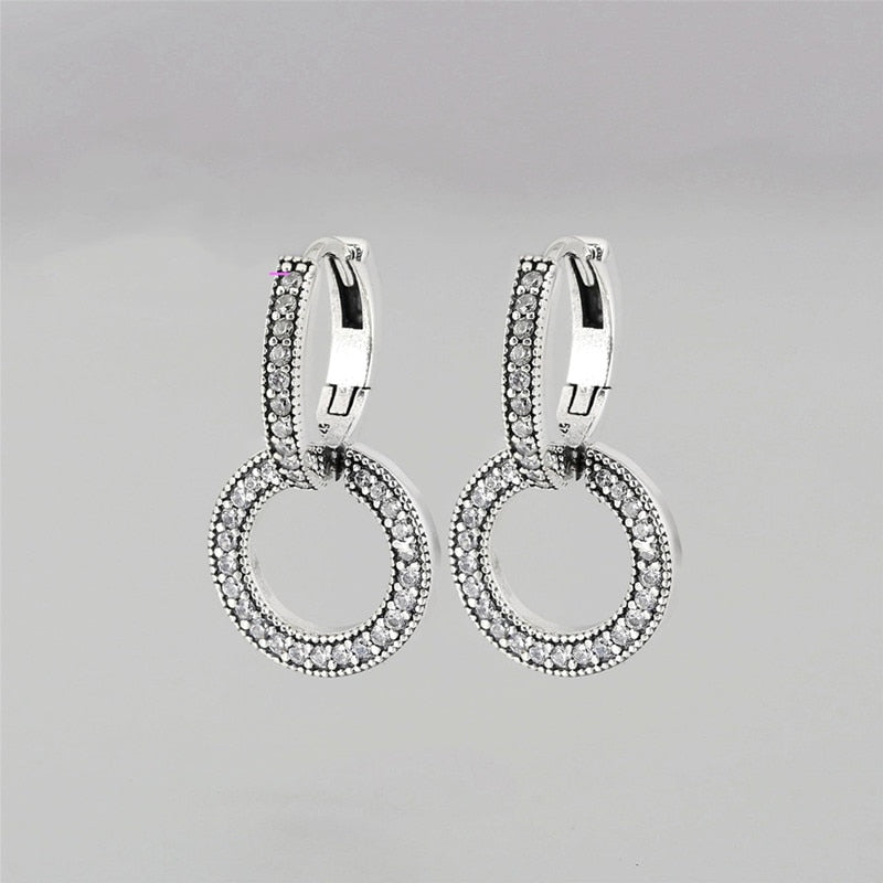 Pendientes de moda de plata de ley 925 con circonita cúbica blanca y doble círculo, joyería clásica para mujer, regalo para niña