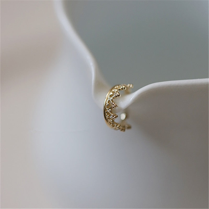 Pendientes de moda de plata de ley 925 con forma de corona francesa sencilla, sin perforaciones, estilo palacio, joyería clásica, regalo