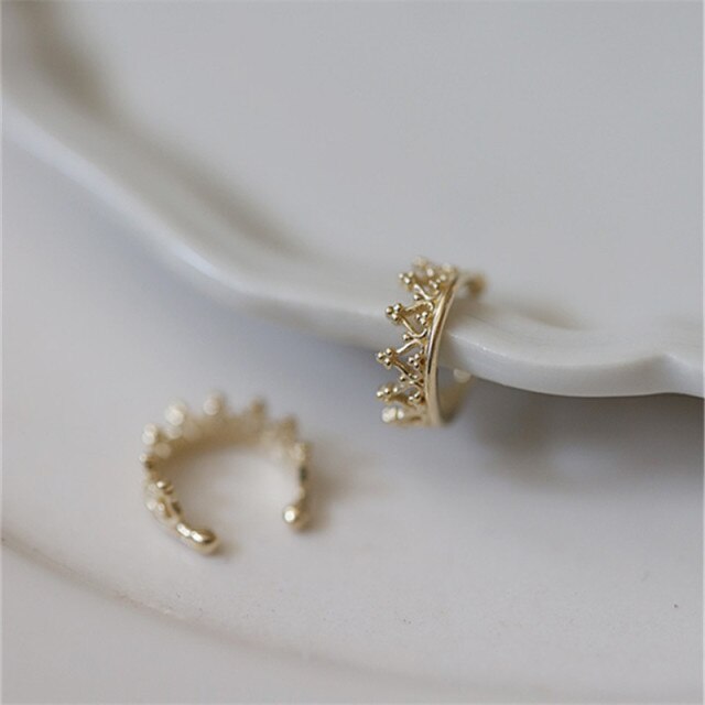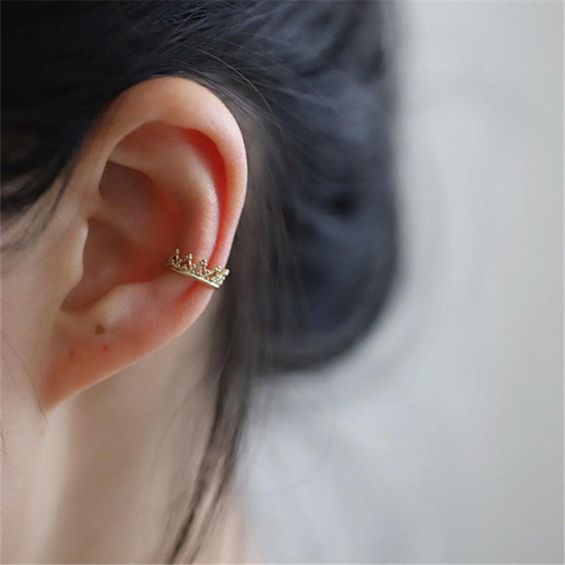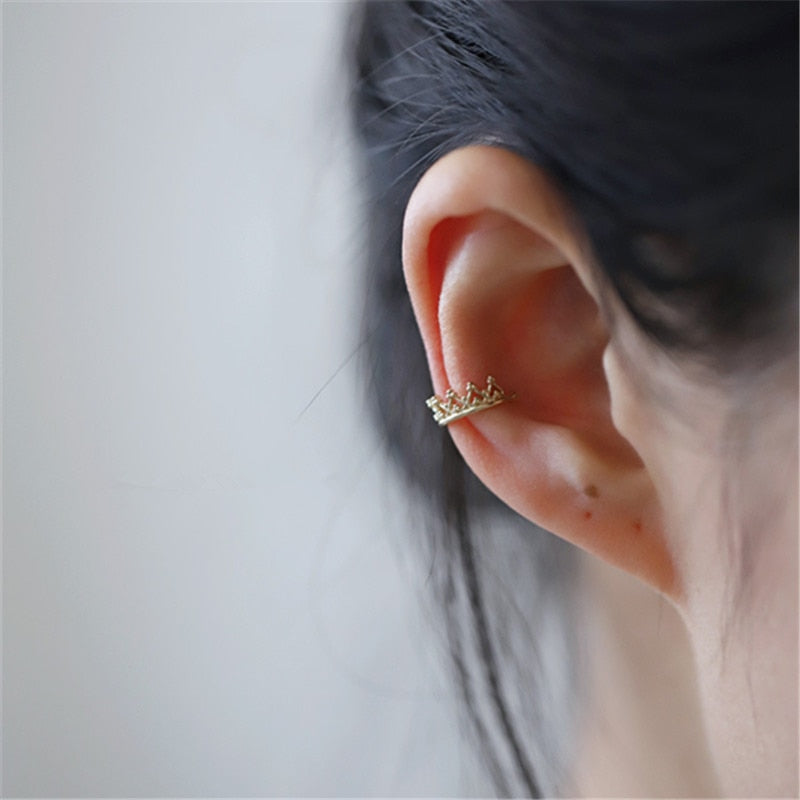 Clip para oreja de plata de ley 925 con corona francesa simple para mujer, sin perforaciones