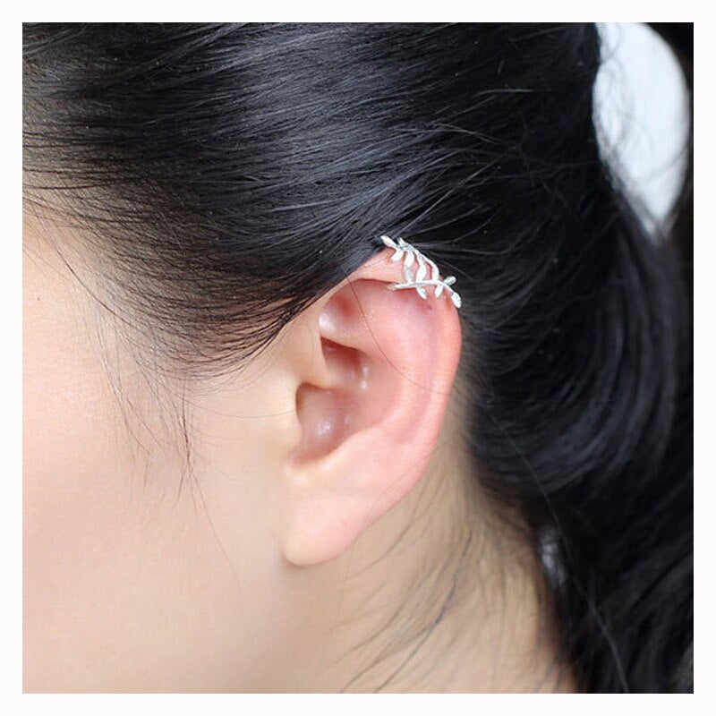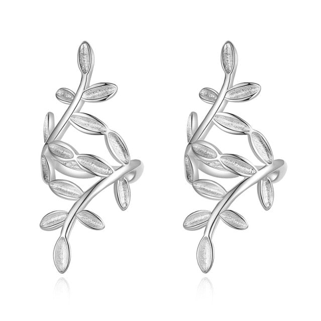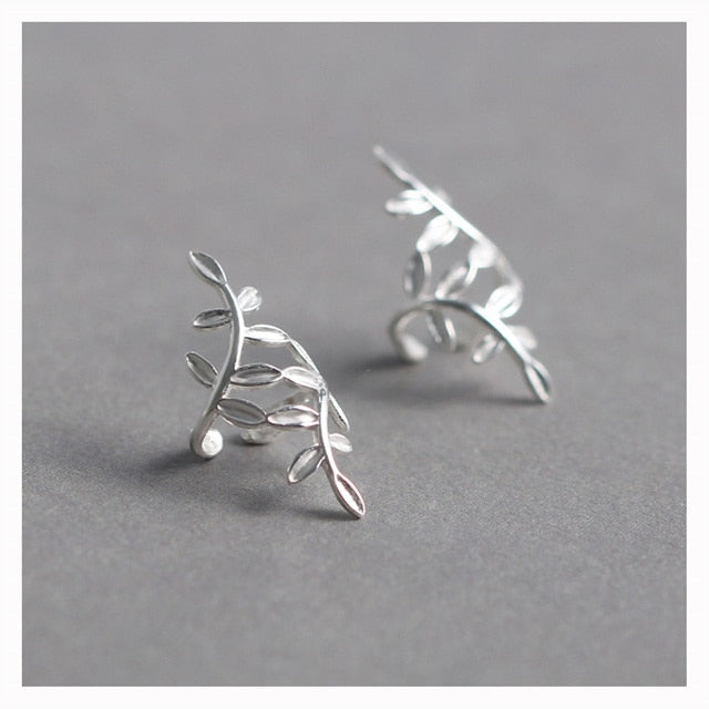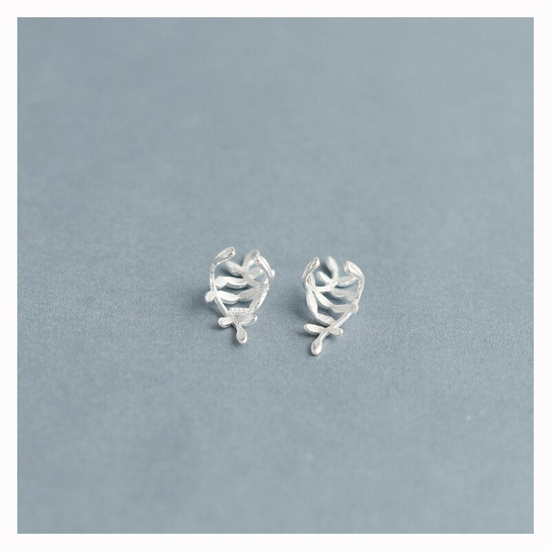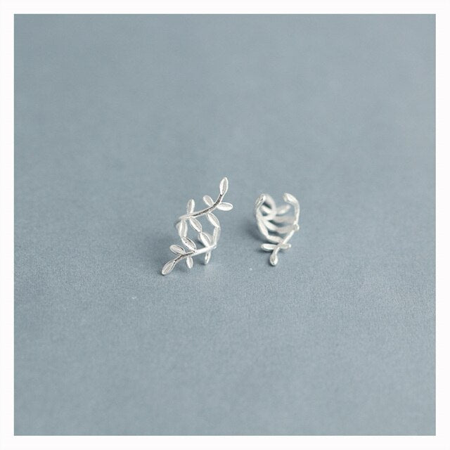Pendientes de moda de plata de ley 925 100% con forma de rama hueca, con clip para mujer y niña, sin piercing.
