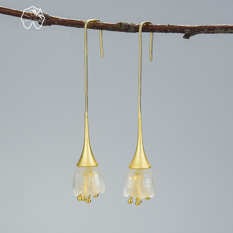 Pendientes de moda: auténtica plata de ley 925, cristal natural, joyería fina hecha a mano, pendientes colgantes con flor de lirio de los valles, regalo para mujer.