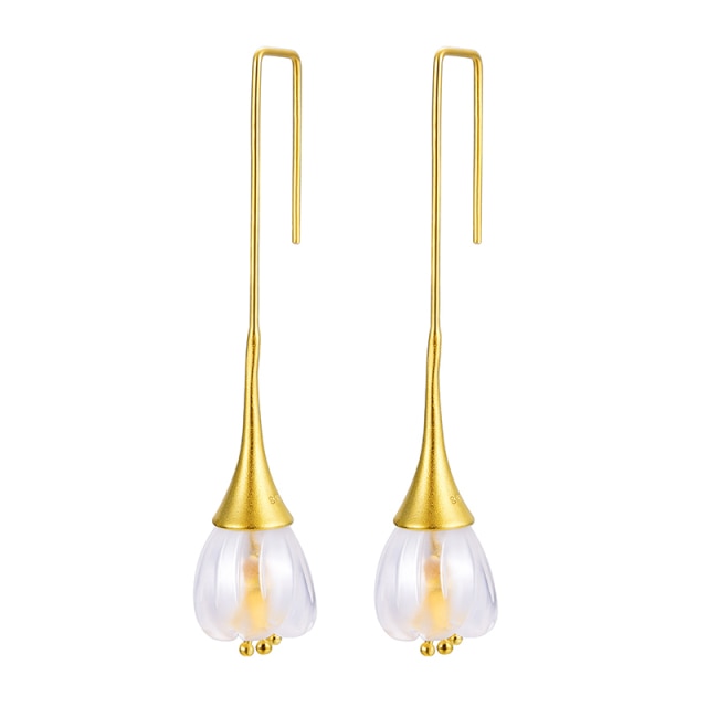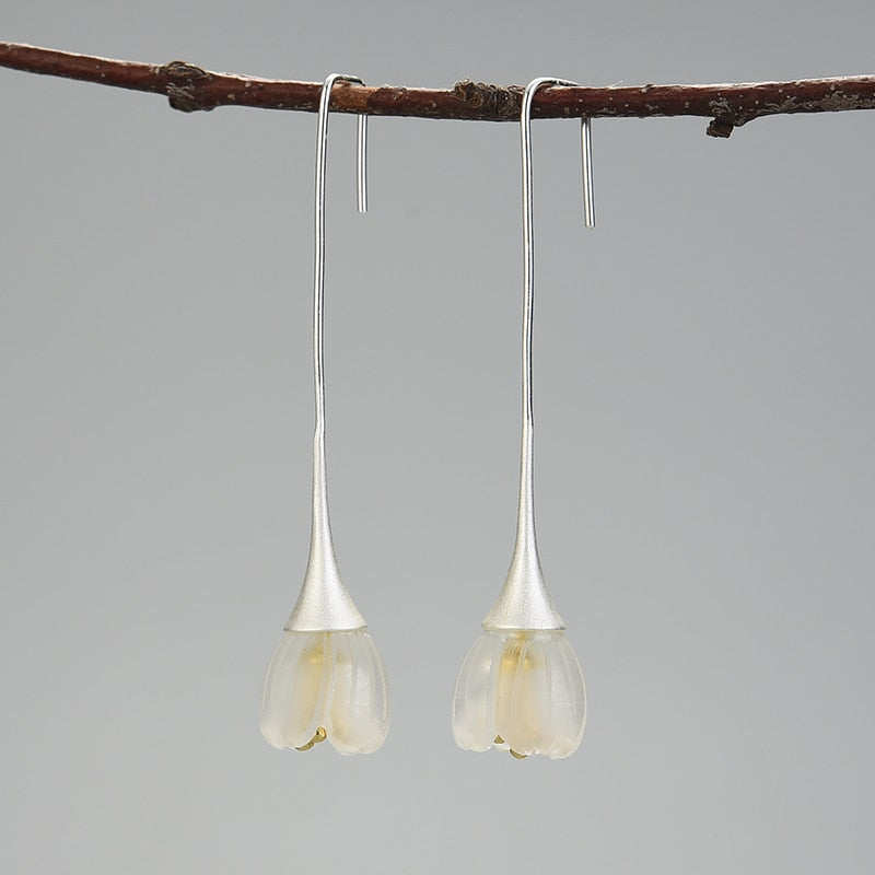 Pendientes colgantes de flor de lirio de los valles en plata de ley 925 para mujer.