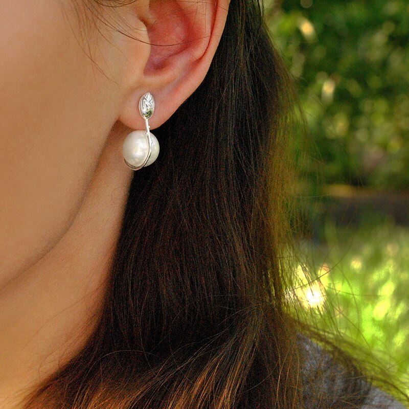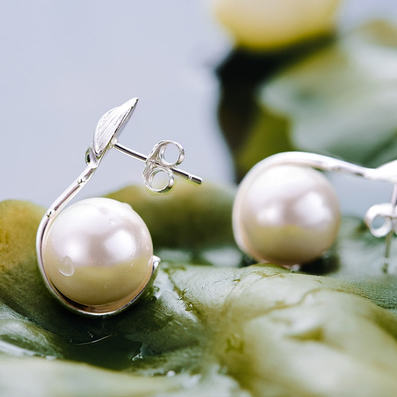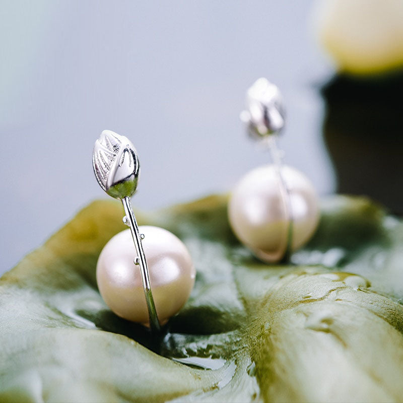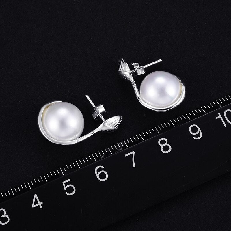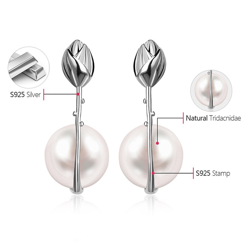 Pendientes colgantes de flor de loto y nácar en plata de ley 925 para mujer