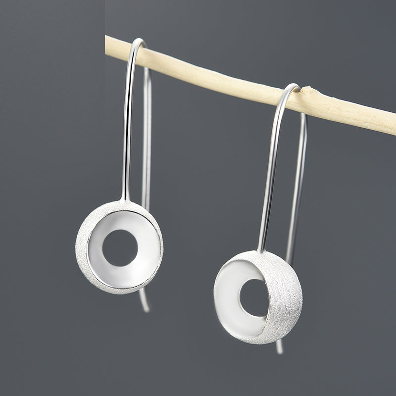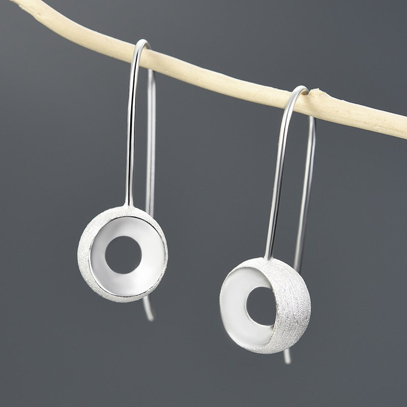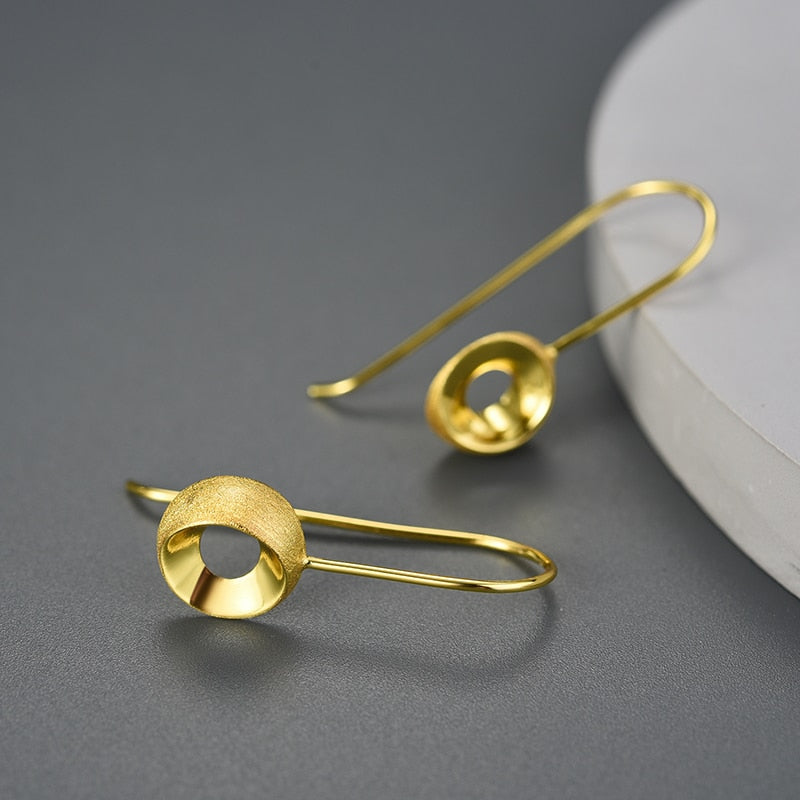 Pendientes colgantes de semicírculo estereoscópico minimalistas de plata de ley 925 para mujer