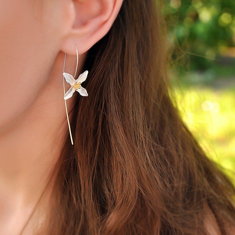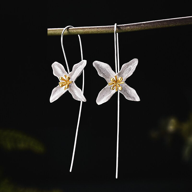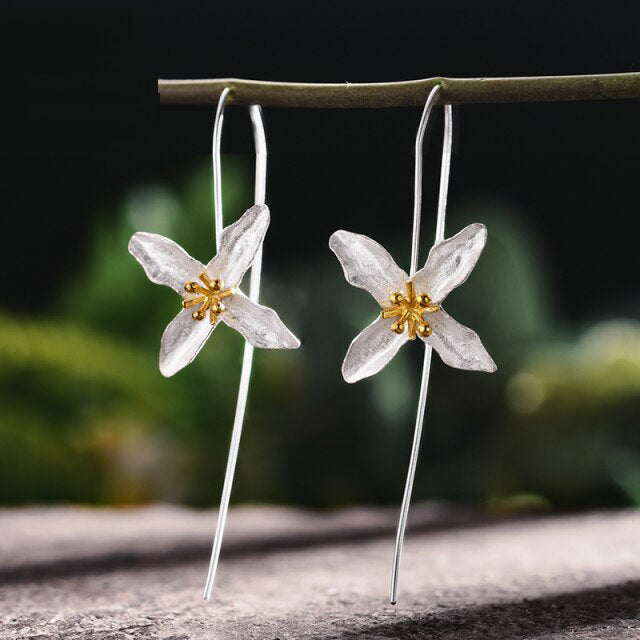 Pendientes colgantes de trébol poético vintage de plata de ley 925, joyería fina hecha a mano, natural.