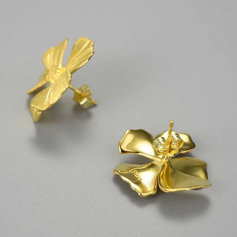 Pendientes de moda: pendientes elegantes de peonía grande con circonita natural en plata de ley 925 auténtica para mujer, joyería llamativa de oro de 18 quilates.