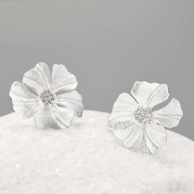 Pendientes elegantes de flor de peonía grande con circonita natural en plata de ley 925 para mujer