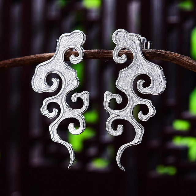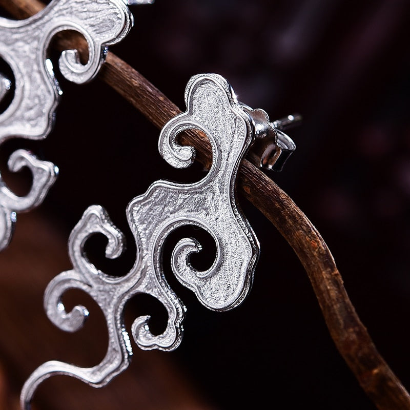 Pendientes colgantes originales de plata de ley 925 con diseño de nube al atardecer, estilo chino, vintage.