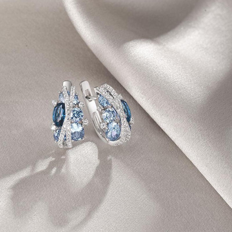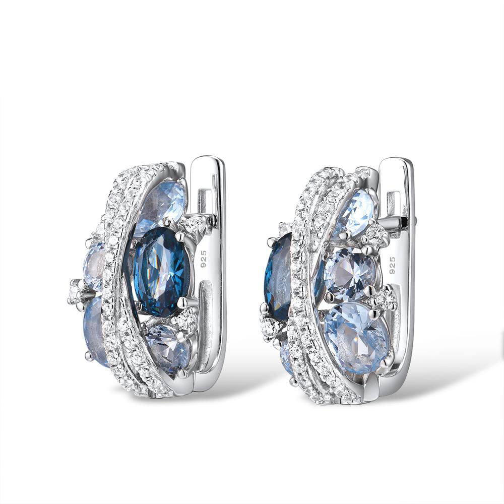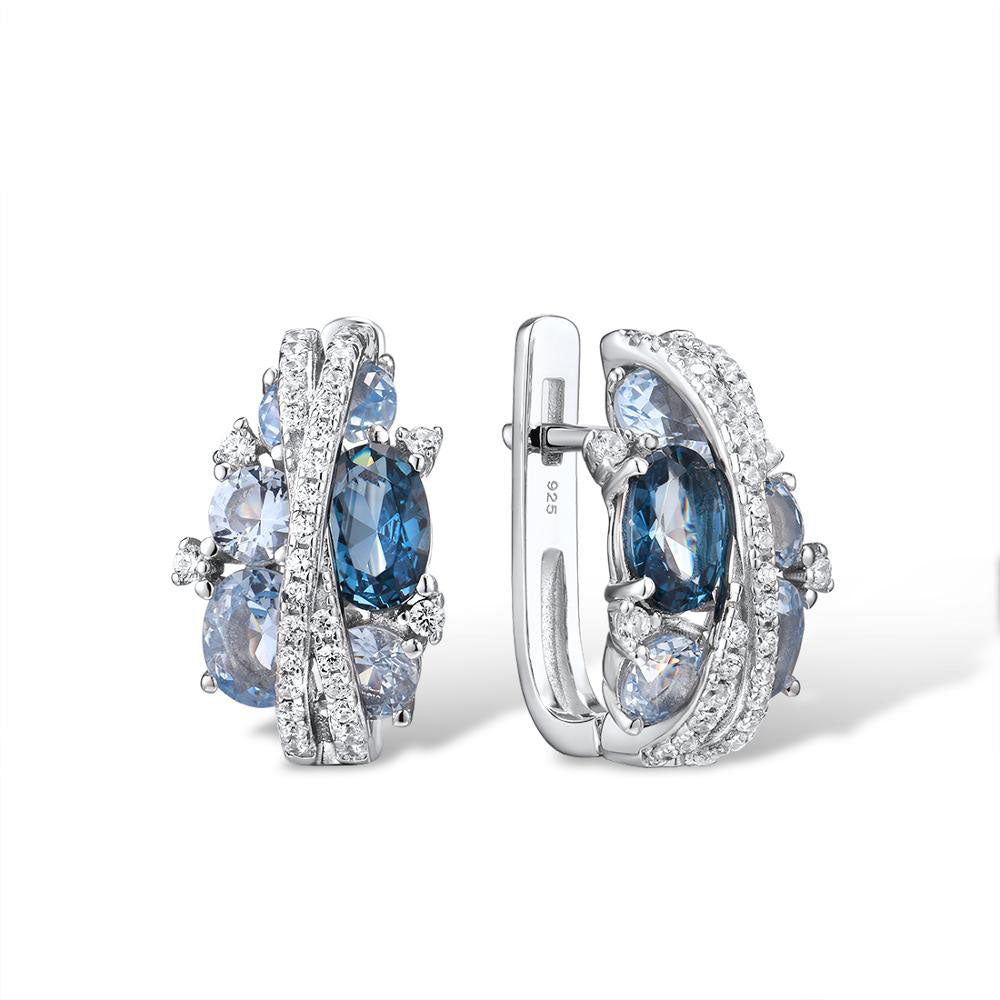 Pendientes glamurosos de plata de ley 925 con circonitas cúbicas azules brillantes
