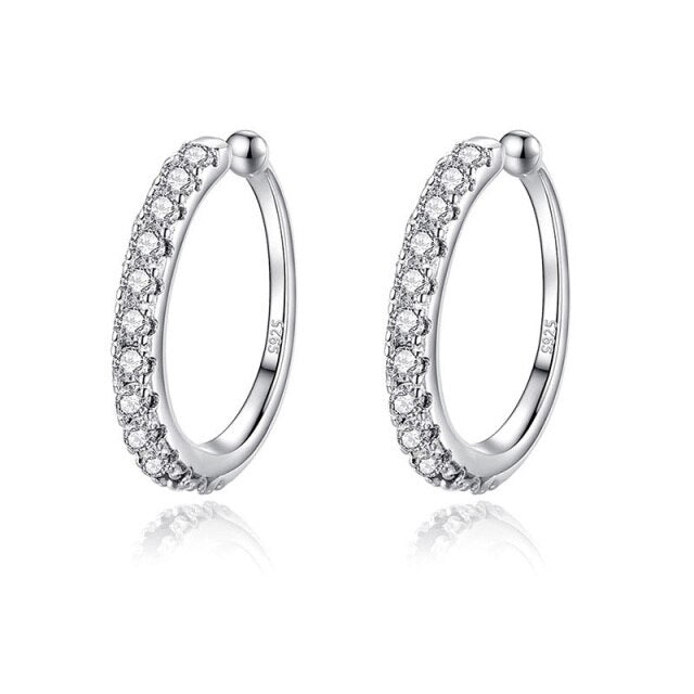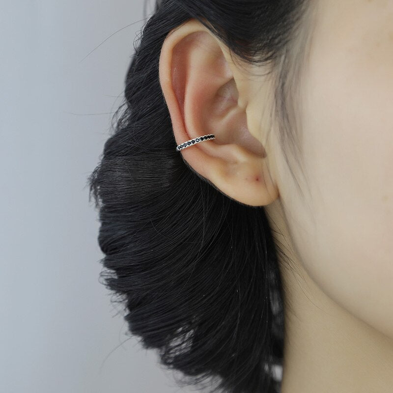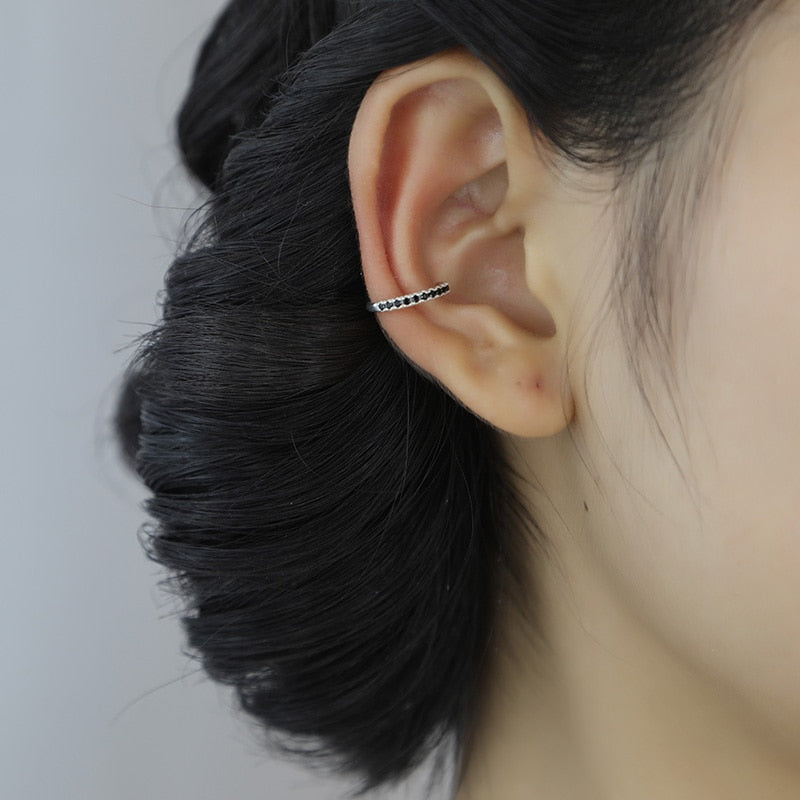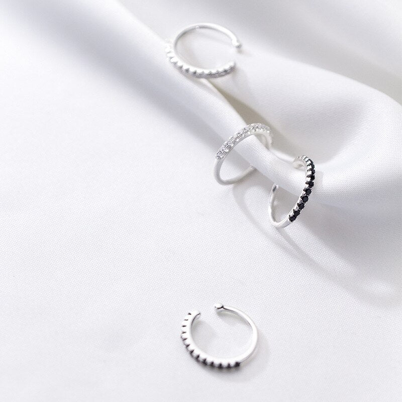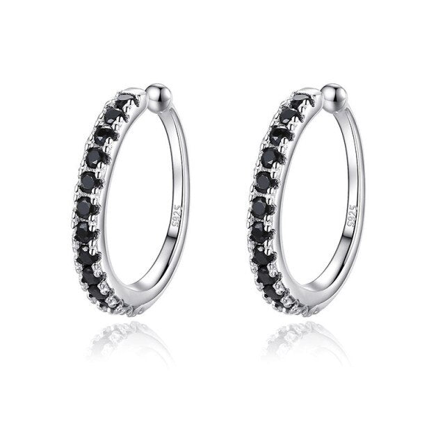 Pendientes de clip con circonitas blancas y negras en plata de ley 925 para mujer