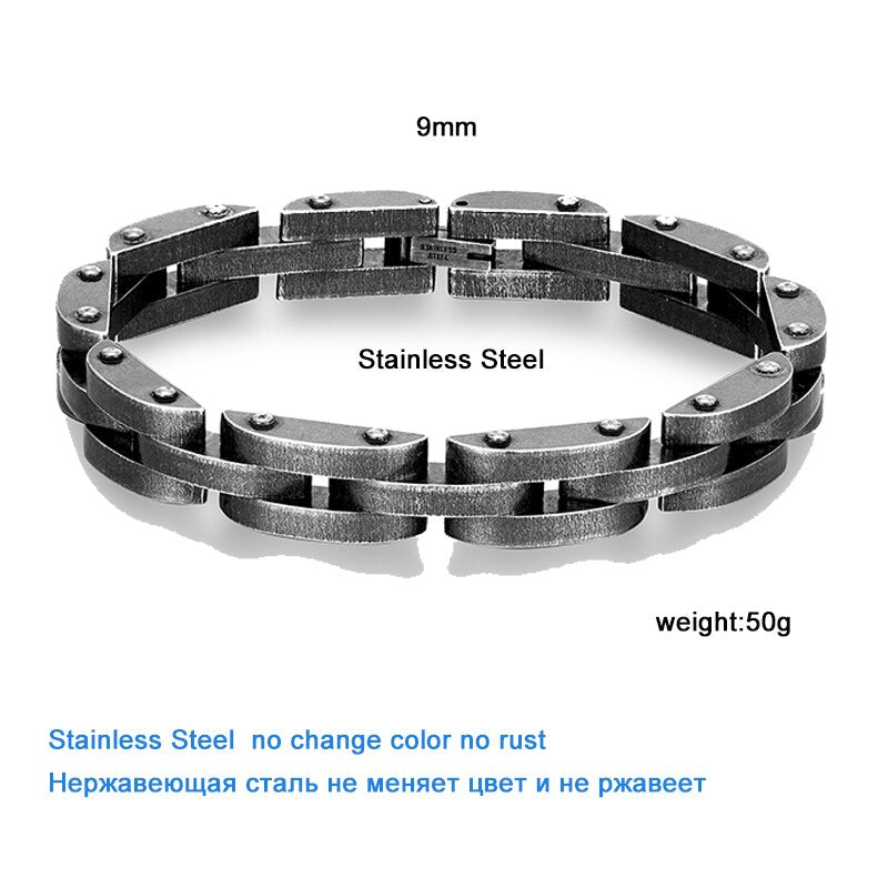 Pulsera de cadena de bicicleta vintage de acero inoxidable de 9 mm de ancho para hombre, color negro, accesorios para motocicleta, joyería hecha a mano, regalos para amigos.