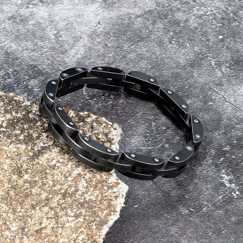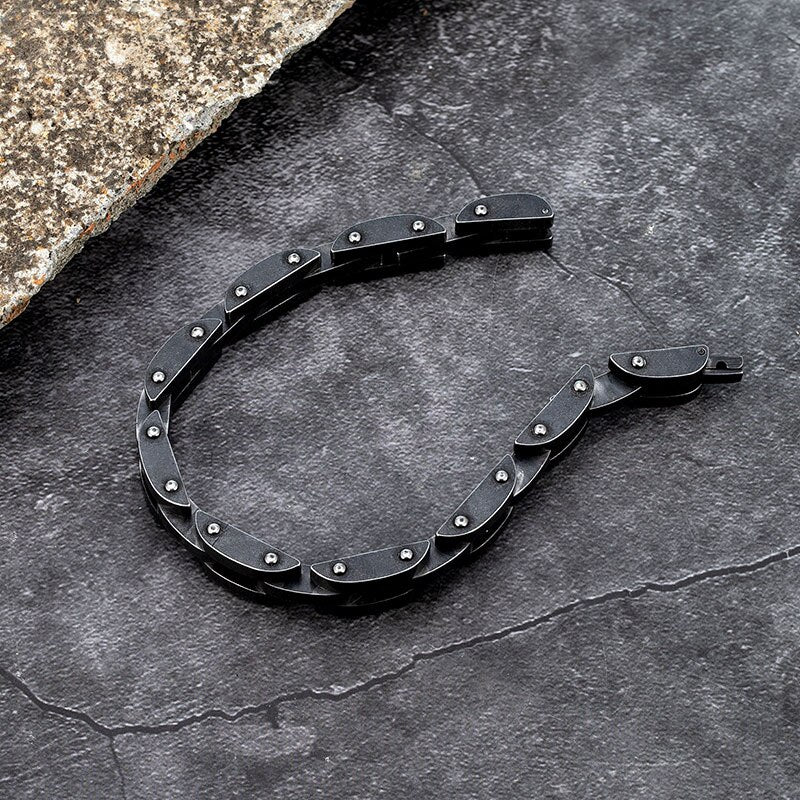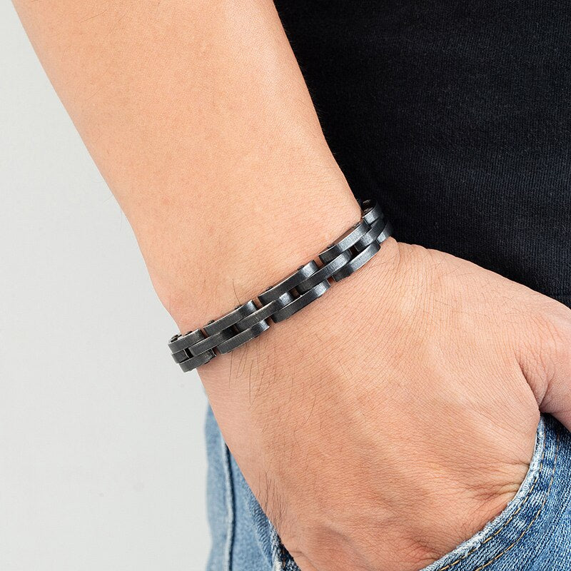 Pulsera de cadena de bicicleta vintage negra de acero inoxidable de 9 mm de ancho para hombre