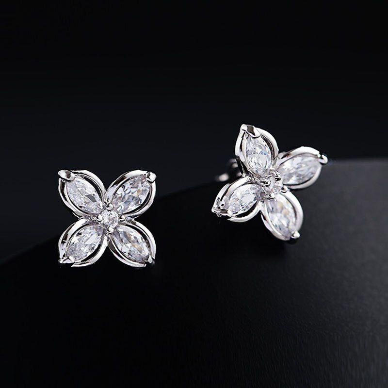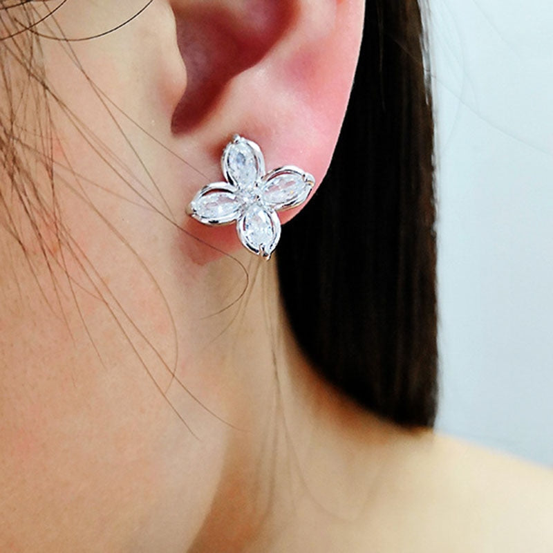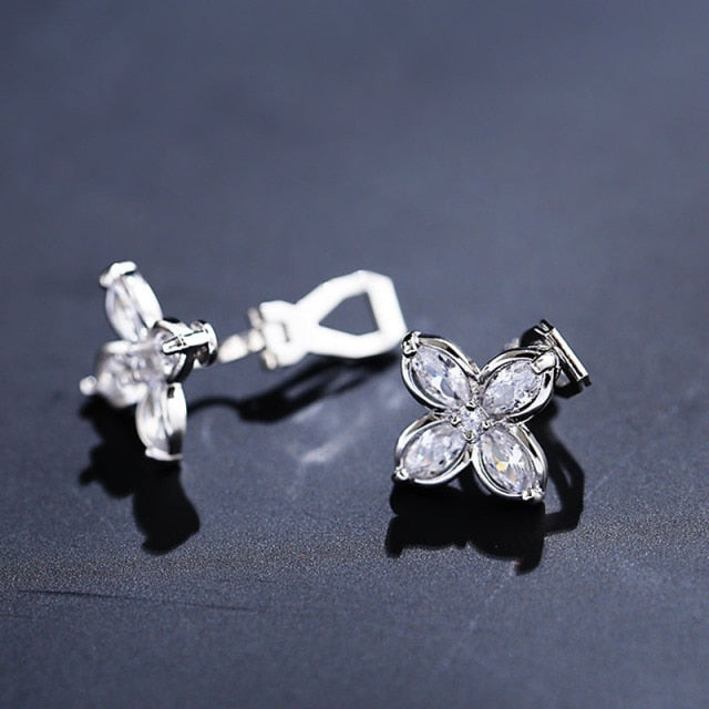 Pendientes de moda con circonitas cúbicas AAA y forma de flor, con clip, sin perforación, para mujer, sin orificio para la oreja.