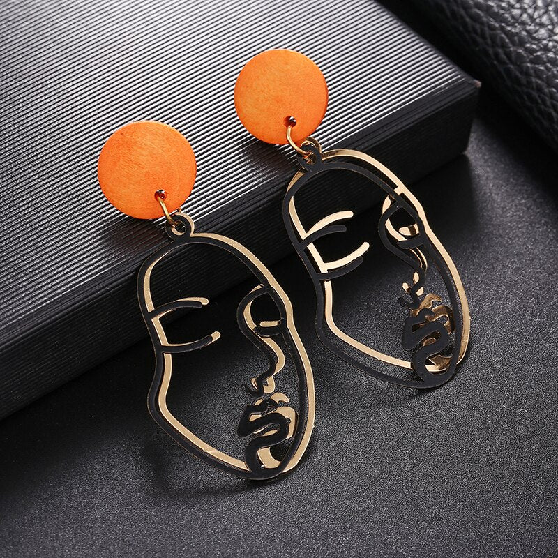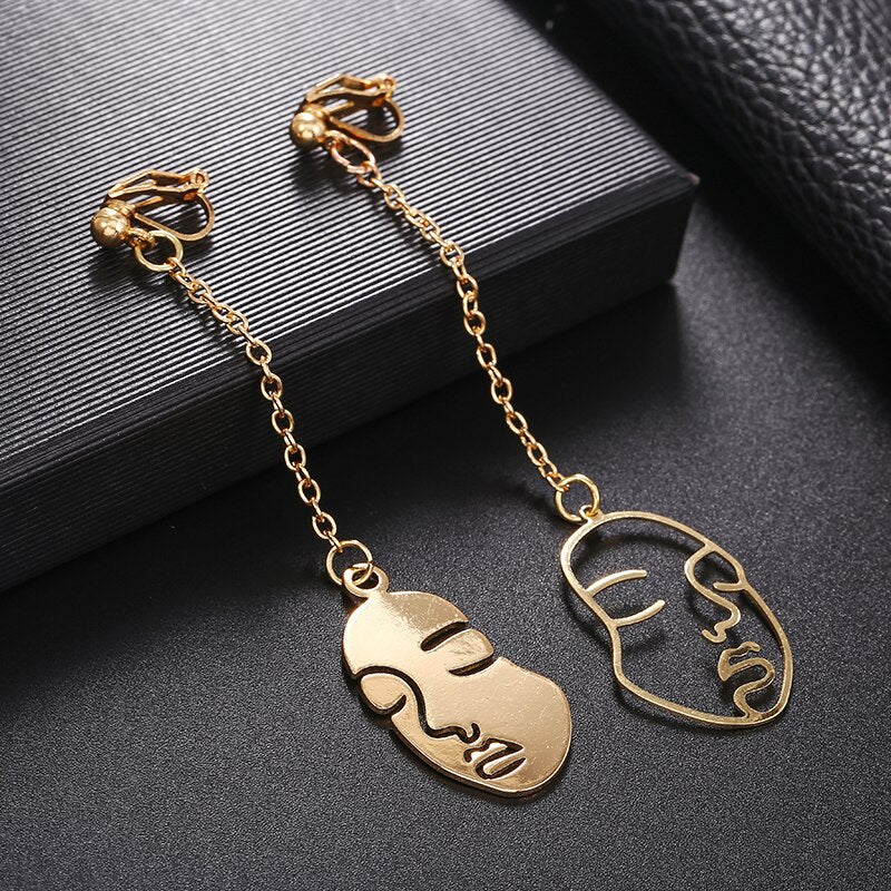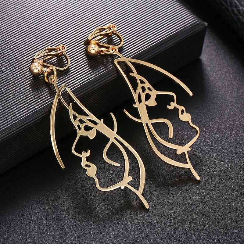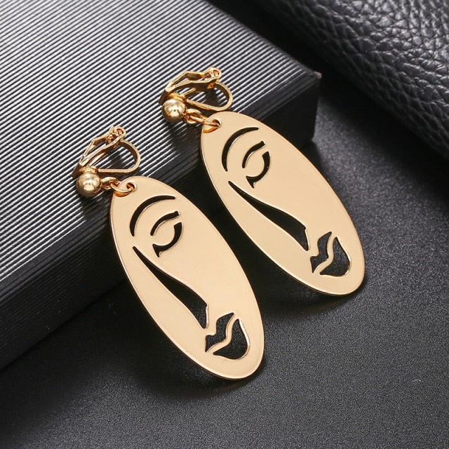 Pendientes de moda: ¡Novedad! Pendientes de clip con cara hueca, elegantes y abstractos, sin perforaciones, para niñas.