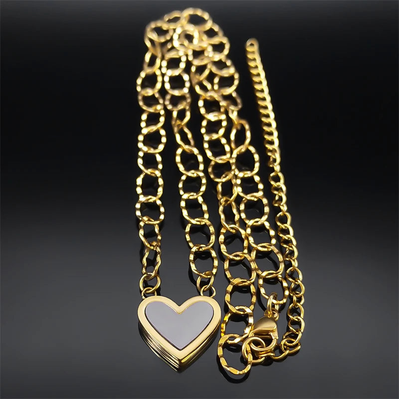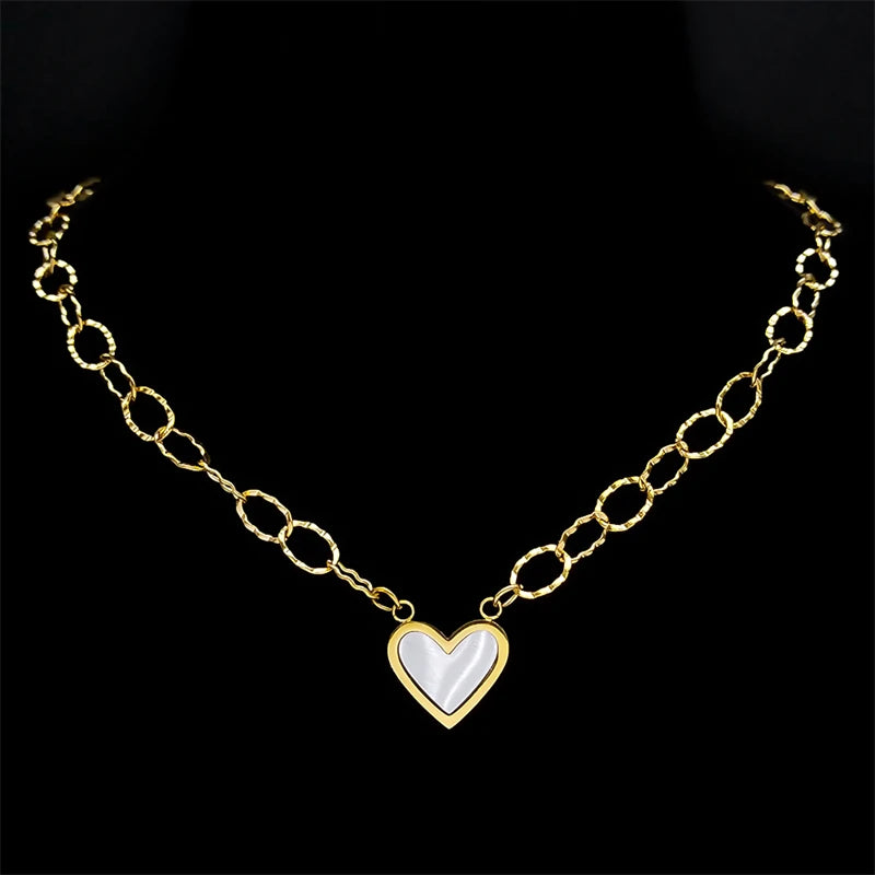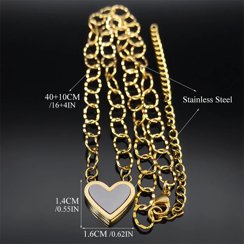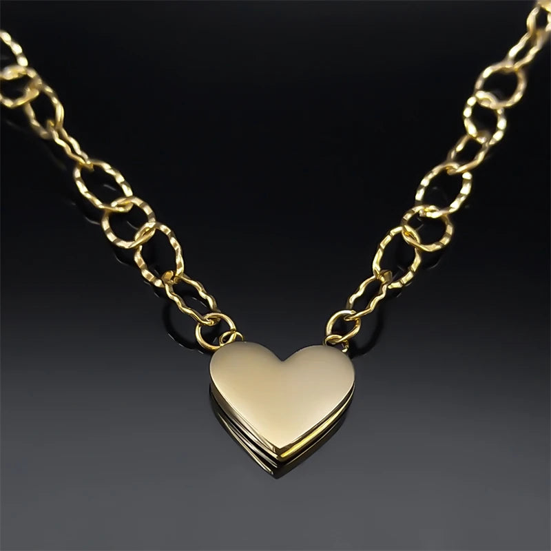 Collar con colgante de corazón estético para mujer, de acero inoxidable, color dorado, estilo Kpop, estilo grunge vintage, joyería de cadena.
