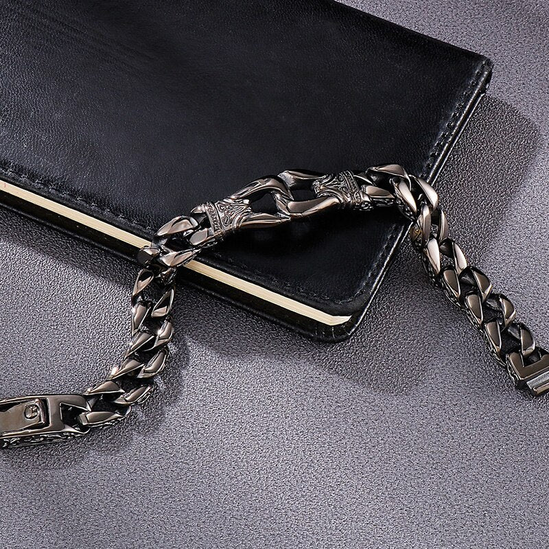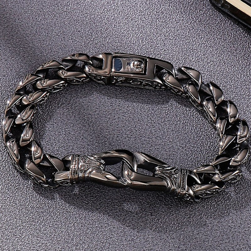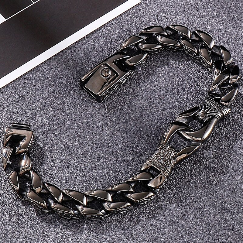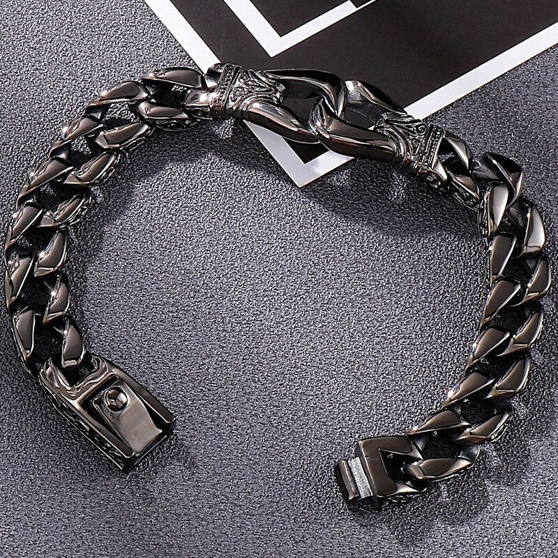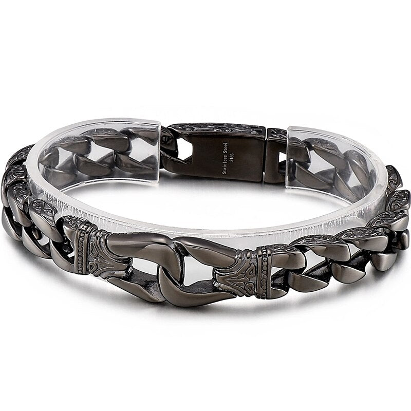 Increíble pulsera de eslabones curvos de acero inoxidable negro para hombre, brazalete para hombre, joyería vikinga vintage.